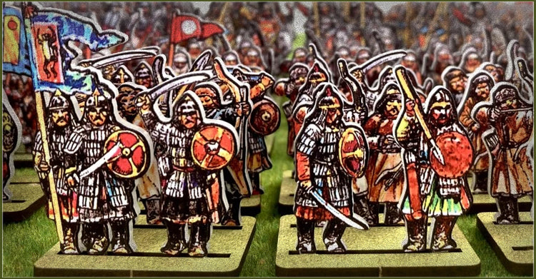 Illustrated by Peter Denis, a skilled illustrator of tactical wargaming miniatures, each figure in this collection reflects his skillful use of face/verso printing. Denis’s artistry is evident in the vibrant detailing and character-specific attire, from Mongol archers to Russian cavalry. His approach, printing unique details on both sides, creates a dynamic presence on the tabletop, enhancing the realism and engagement of every tabletop wargame.