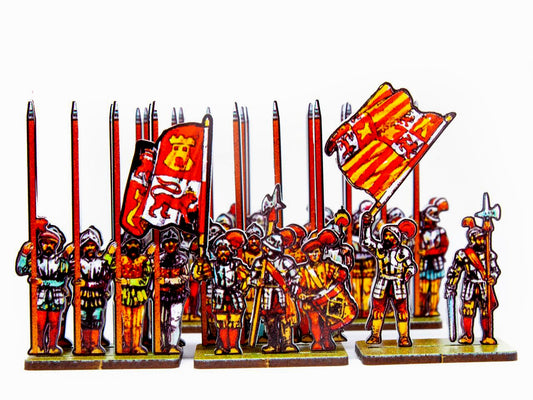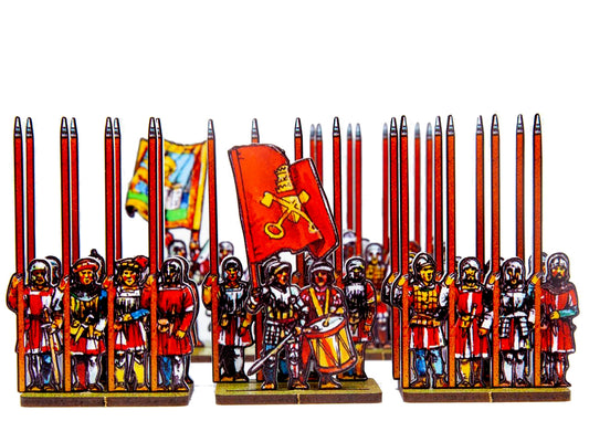 The Renaissance marks a revolutionary epoch of cultural and intellectual rebirth, intertwined with groundbreaking military strategies and alliances. This dynamic period unfolds in the Italian Wars, featuring monumental clashes where art, science, and warfare merged into a tapestry of history. The collection showcases quintessential troops for re-enacting these pivotal battles, including the organized Swiss Pikes, the disciplined Spanish Arquebusiers, and the dashing French Adventurers.