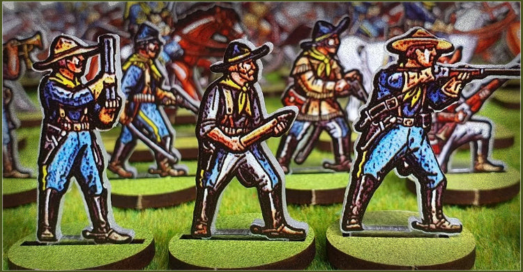 Designed by Vyacheslav Batalov, an illustrator and history passionate with an experize in drawing figurines tailored for skirmish wargaming. His artistic technique adopts a side perspective, drawing inspiration from the traditional method employed in painting flat metal figurines.