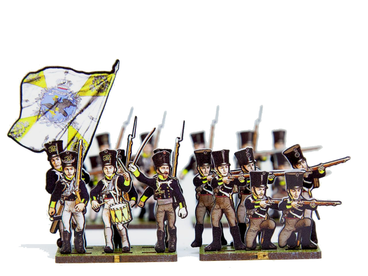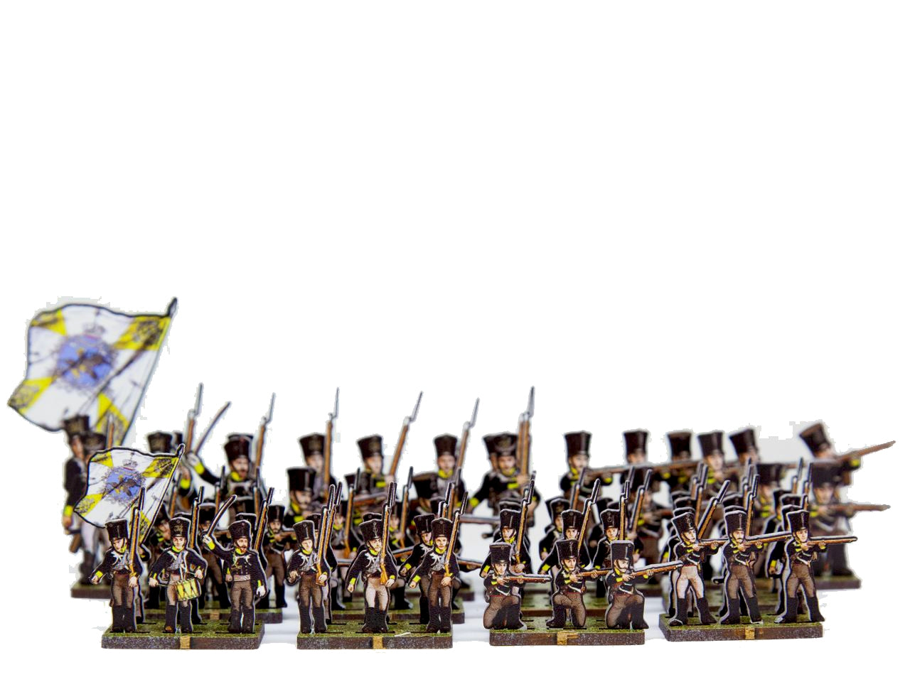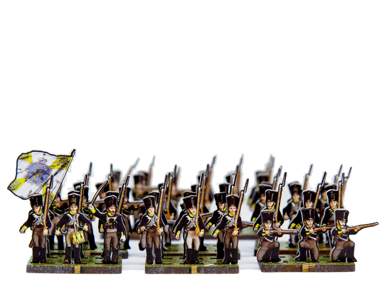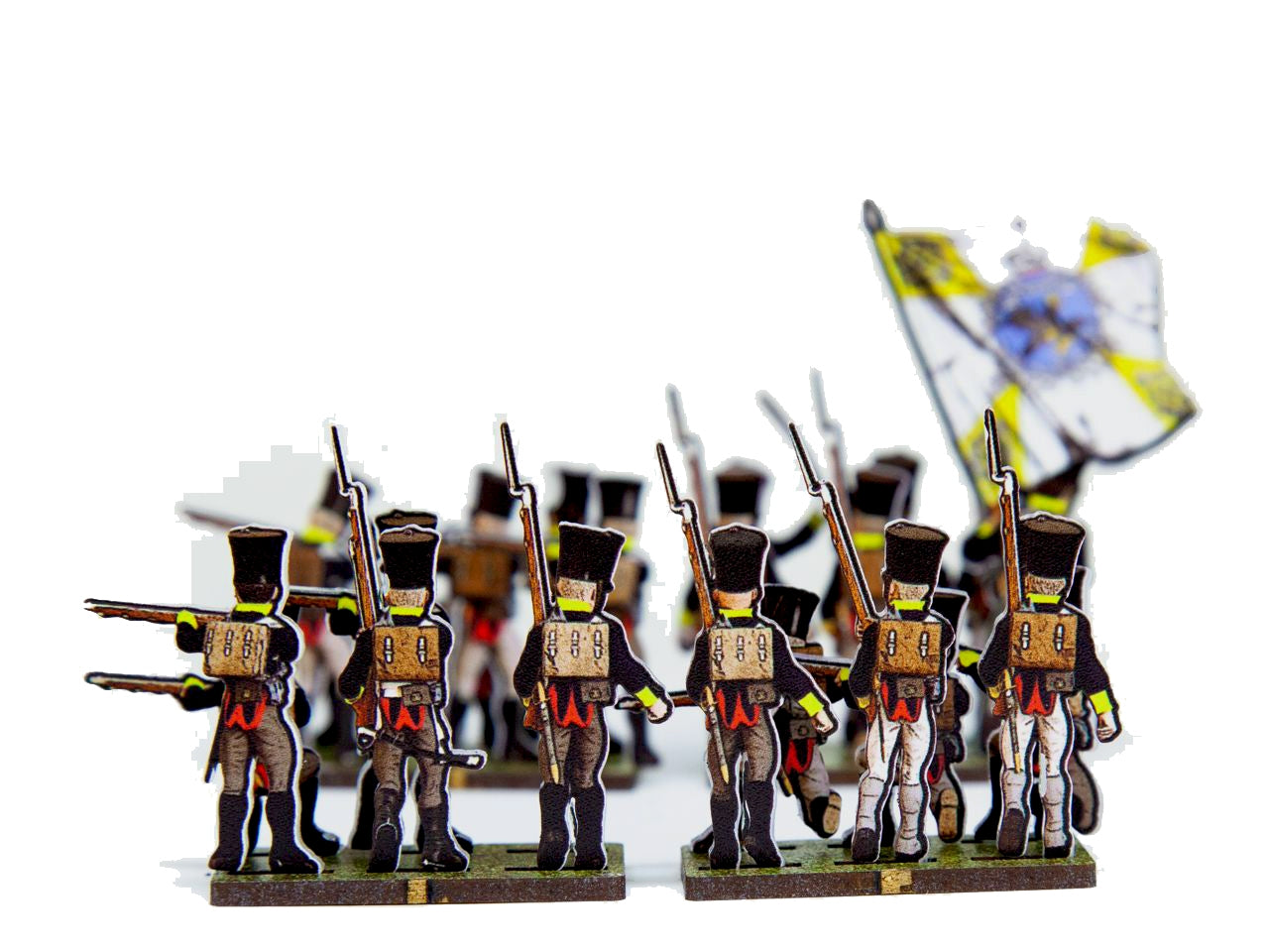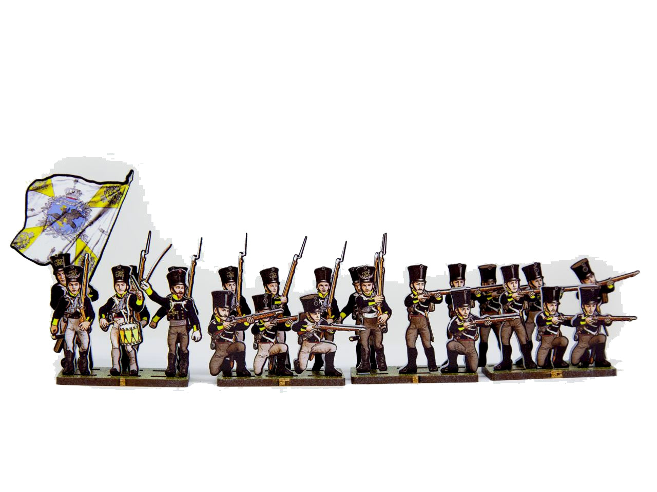 The 10th Infantry Regiment Musketeers Set is crafted on a 15x20 cm Plexiglass sprue and includes: