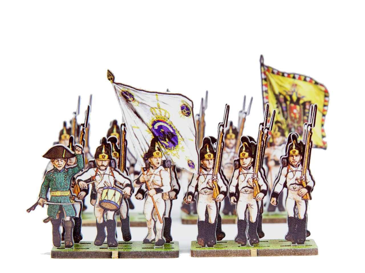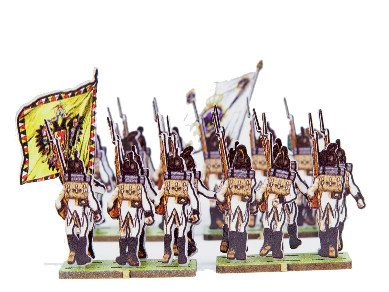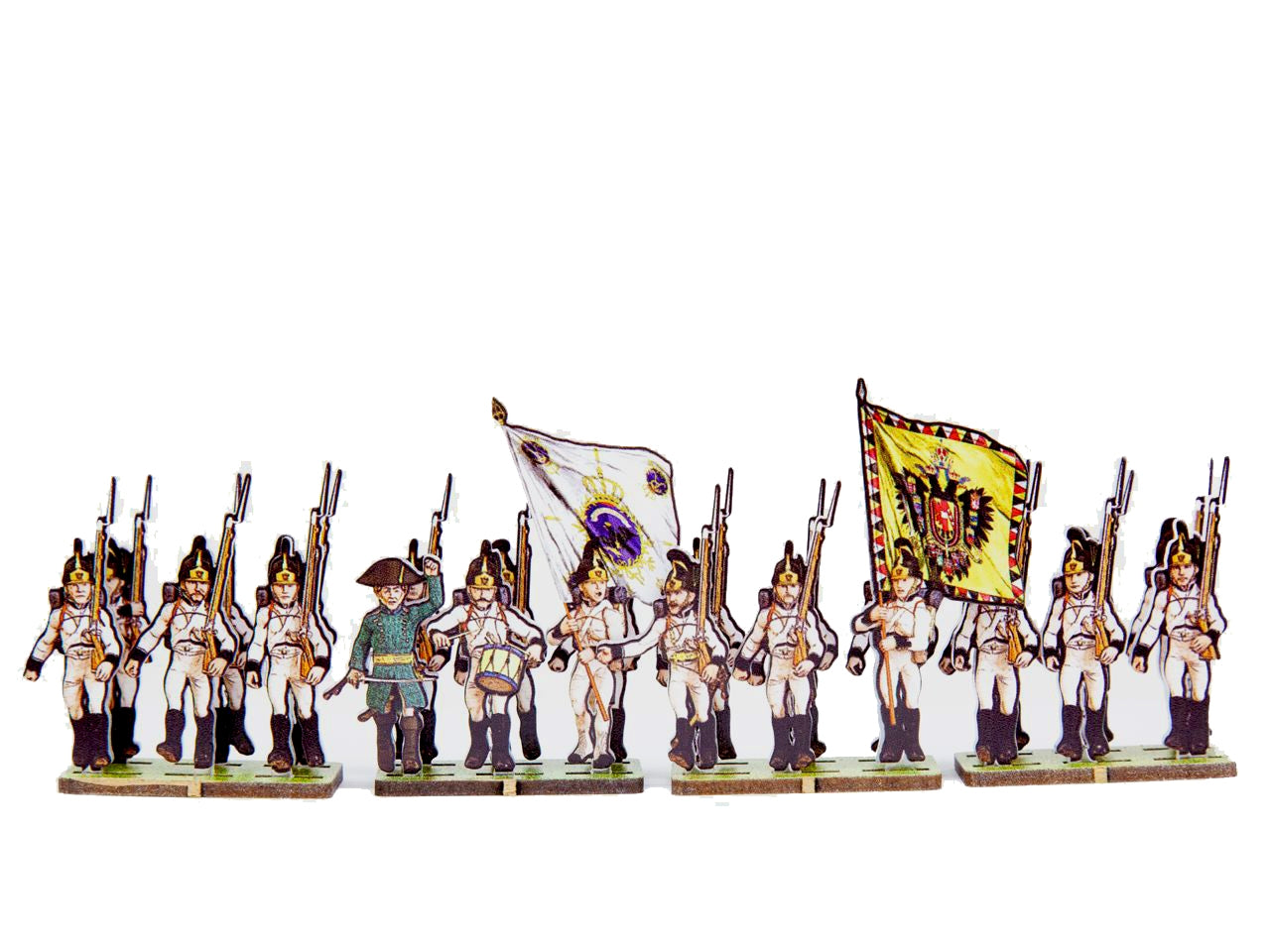 The 14th Regiment von Klebek Fussiliers Set is crafted on a 15x20 cm Plexiglass sprue and includes:
