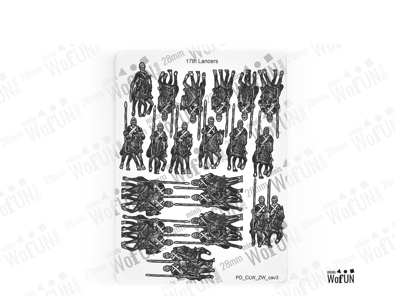 The 17th Lancers Set is crafted on a 15x20 cm Plexiglass sprue and includes:
