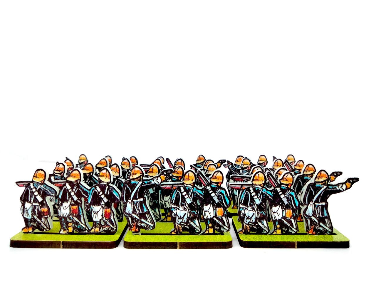 - An Infantry Base holds 2 strips of figurines, in 2 ranks (one behind the other).