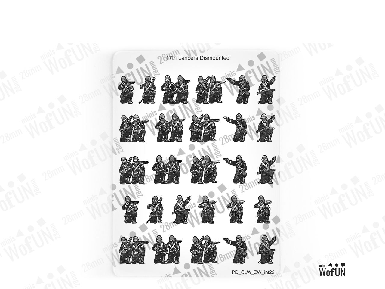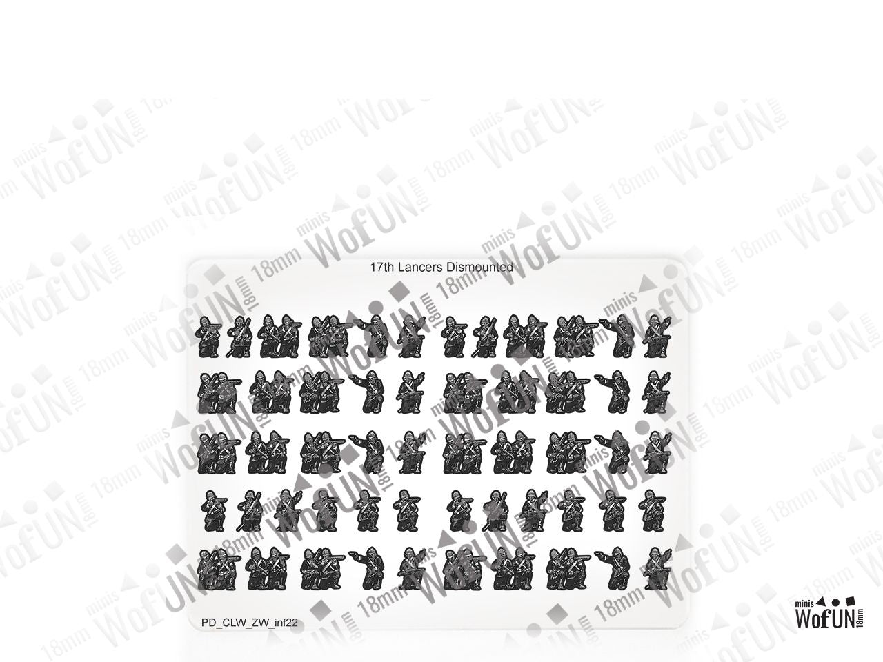 The 17th Lancers Dismounted Set is crafted on a 15x20 cm Plexiglass sprue and includes: