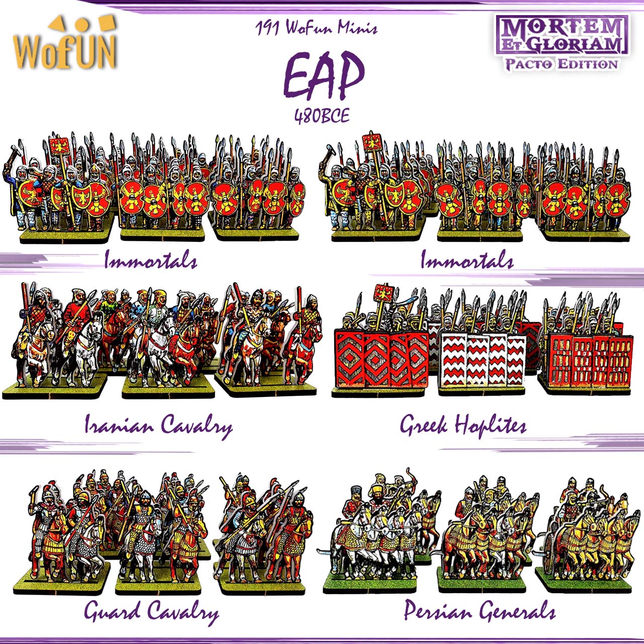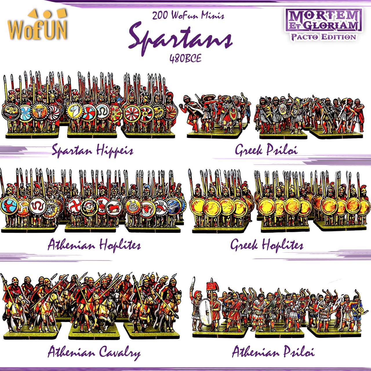 This miniatures pack offers a quick setup, including 391 pre-printed figurines and 60 bases for the Spartan and Achaemenid-Persian armies. In total the miniatures are placed on 6 sprues of Plexiglass.