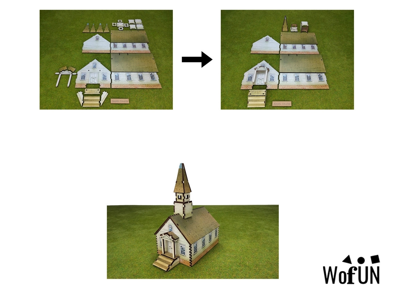 need to assemble the components, and you will have, in less than an hour, a Small Church for your games.