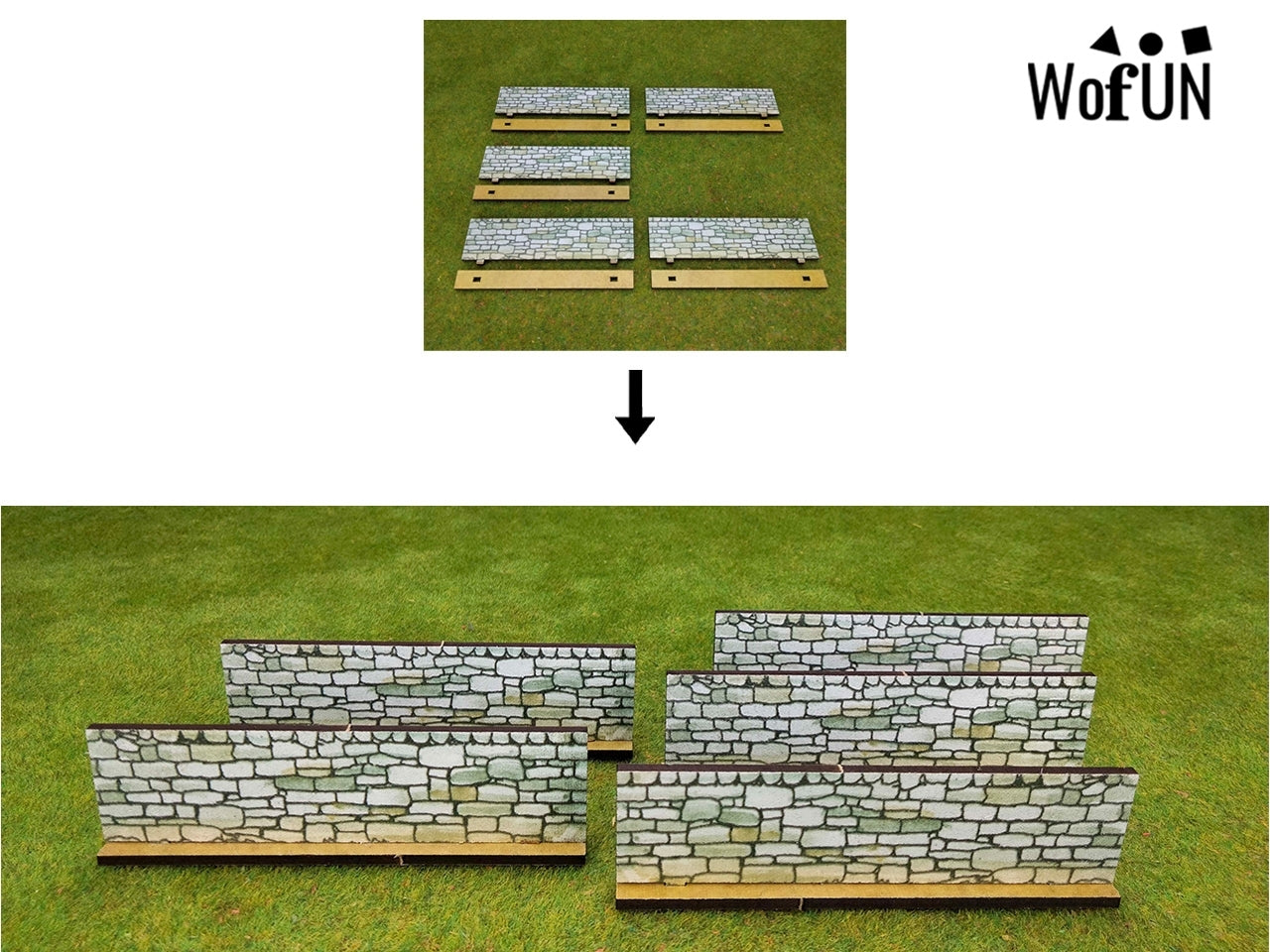 WoFun wargaming miniature props are produced from 2.5 mm MDF. The diorama is printed with textures, as seen in the photos, so you only need to assemble the components to get a Wall for your games.