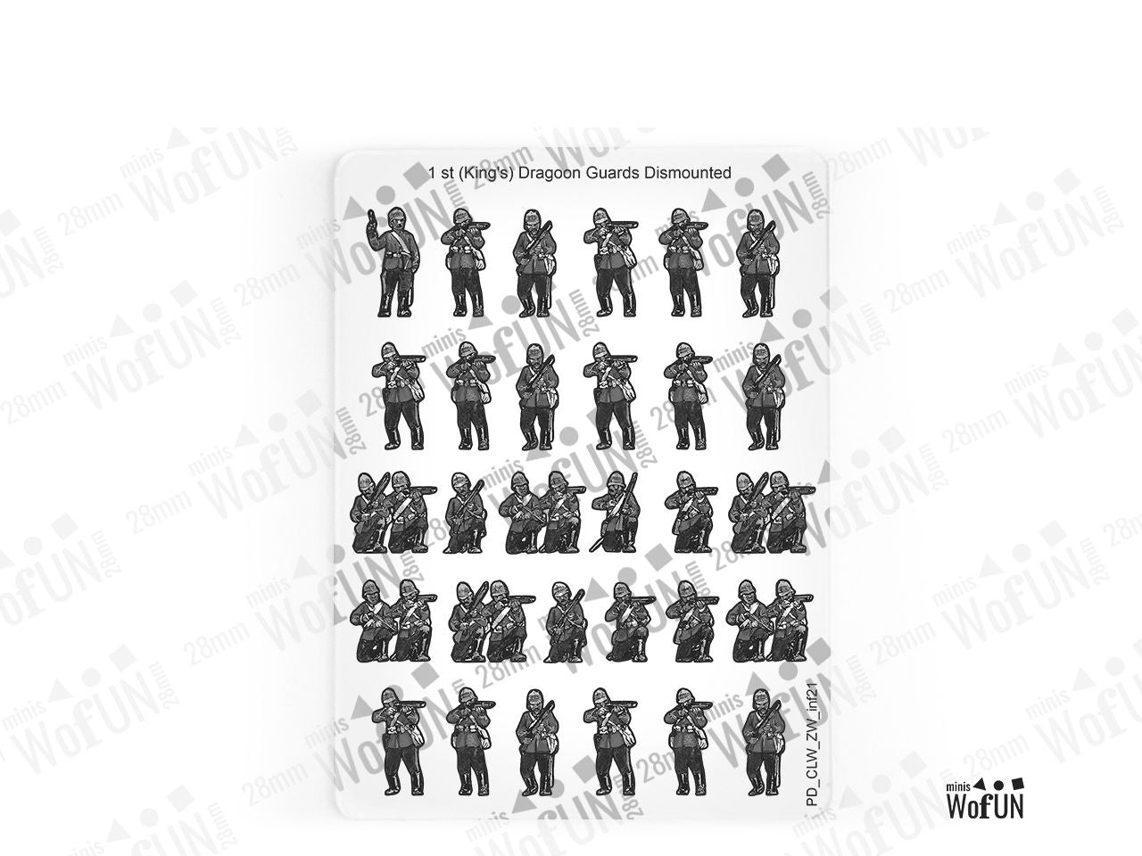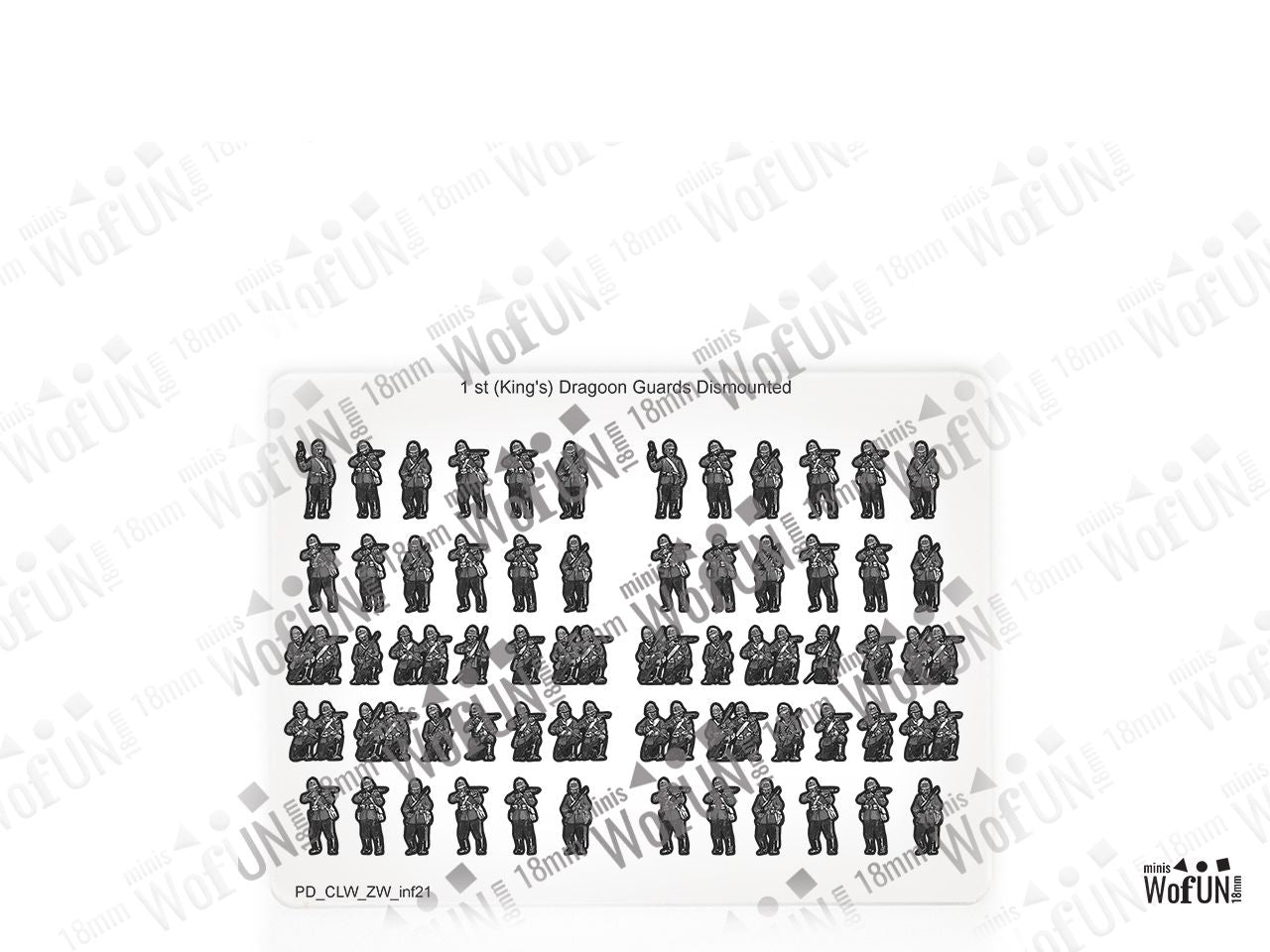The 1st (King's) Dragoon Guards Dismounted Set is crafted on a 15x20 cm Plexiglass sprue and includes: