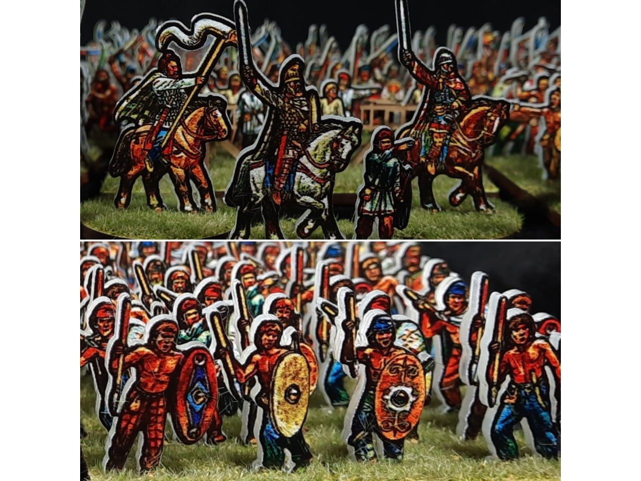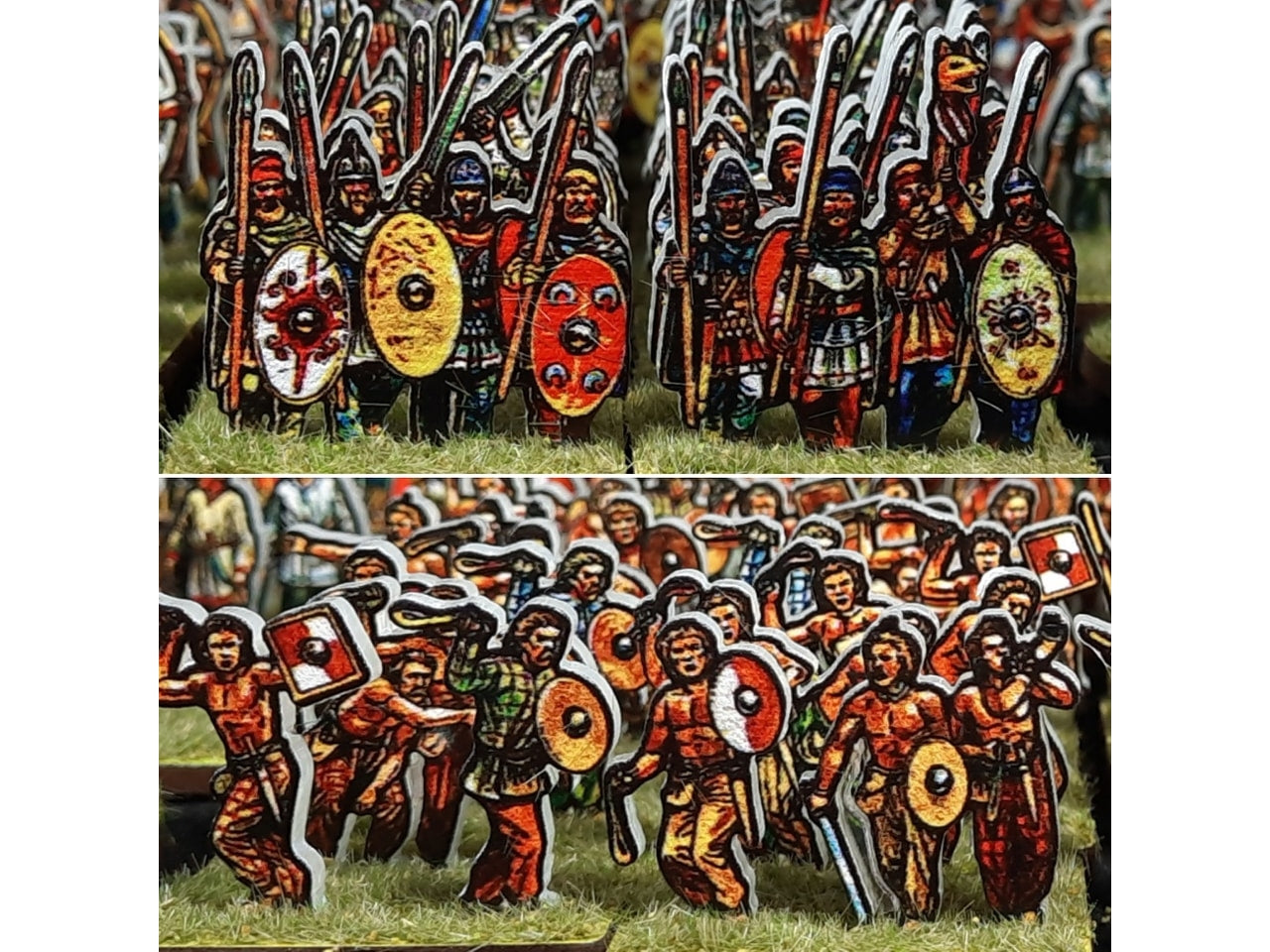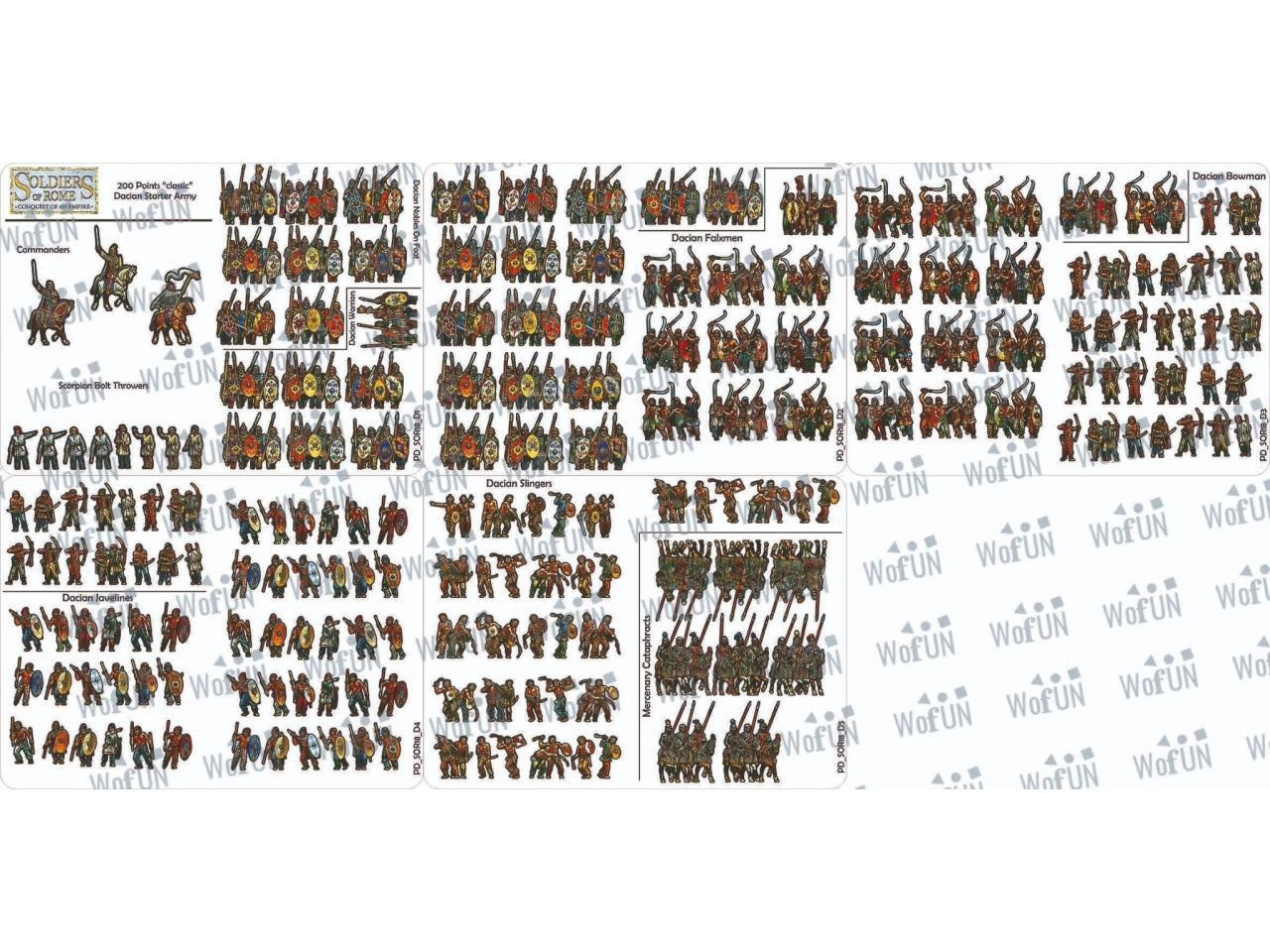 The WoFun Minis - Soldiers of Rome - 200 Points Dacian Army Pack content and the product's photos are made by our collaborator Piers Brand using 18mm WoFun Minis from the Imperial Rome Collection - Peter Dennis Signature Edition. The pack is designed for "Soldiers of Rome" by Warwick Kinrade, published by NorthStar in 2020. Down below you can find a link where you can order the book and the playing cards needed to play the game.