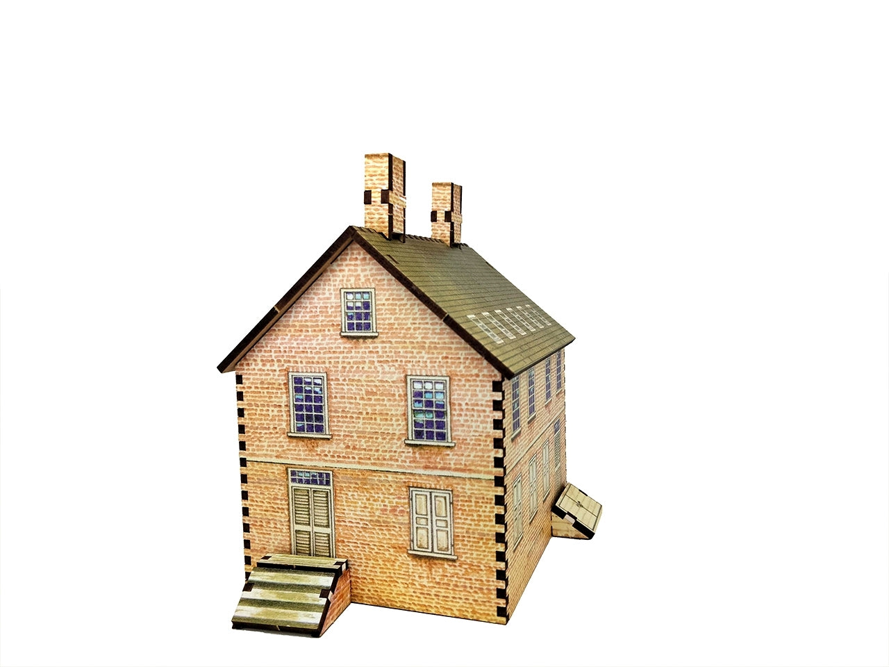 WoFun wargaming miniature buildings are produced from 2.5 mm MDF. The diorama is printed with textures, as seen in the photos, so you only need to assemble the components, and you will have, in less than an hour, a American Brick House for your games.