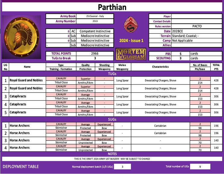 The Roman-Parthian Wars' battles often involved large armies, for example, the Battle of Thermopylae, during which around 40.000 men fought. The pack is designed for smaller affairs, perhaps the sort of engagements between advance and rearguards that often took place before or after the larger battles.