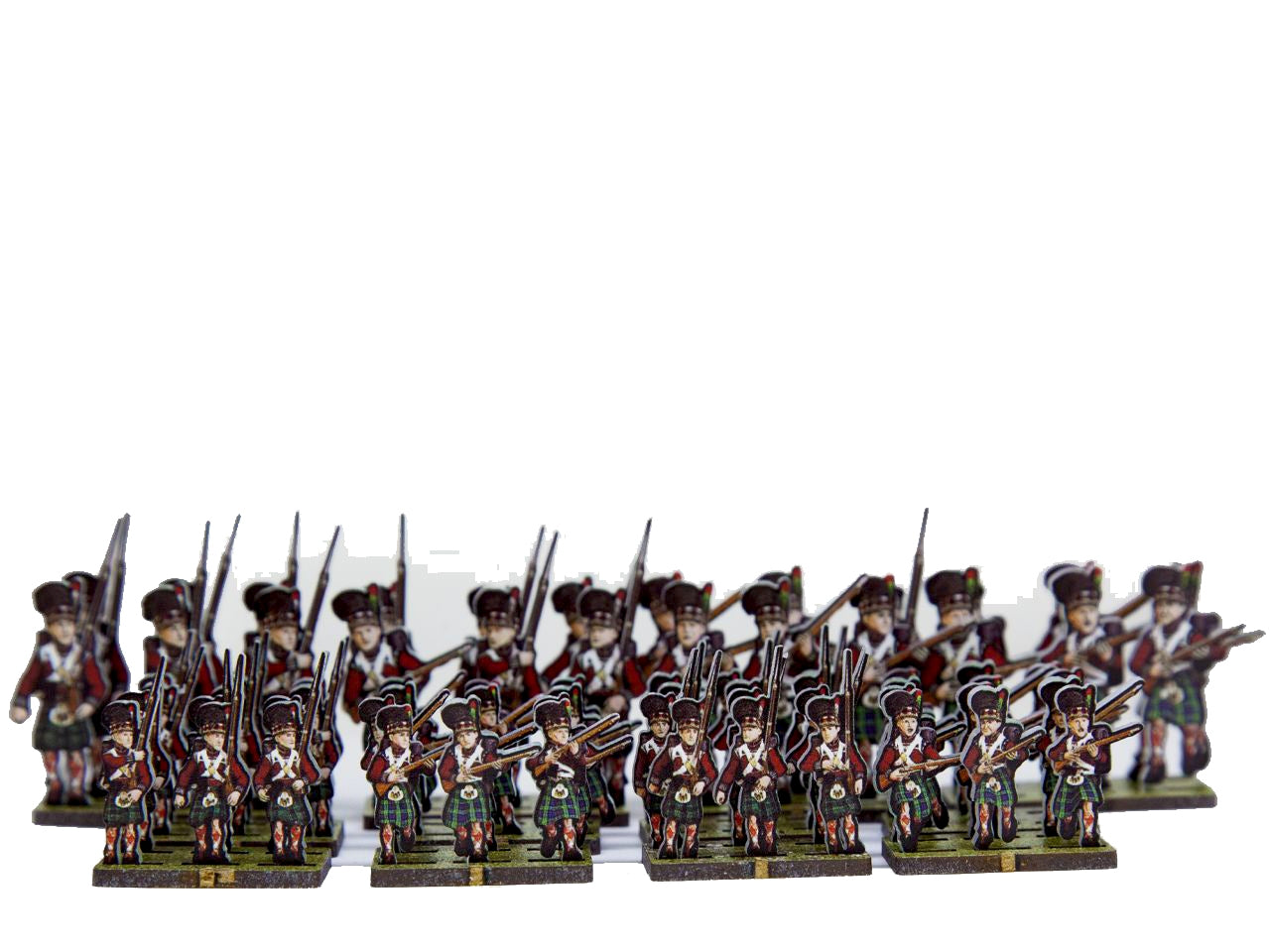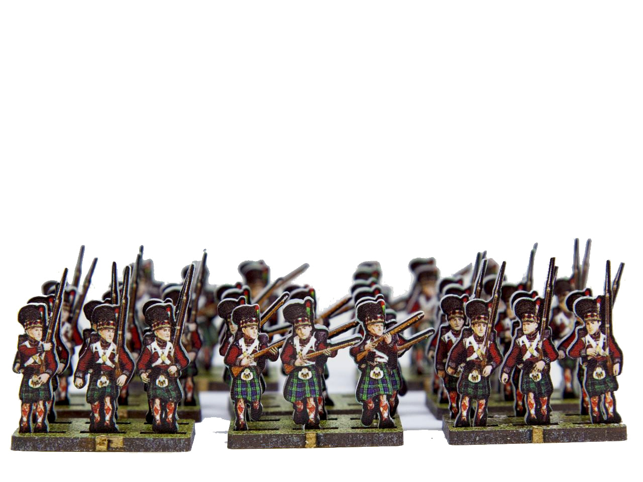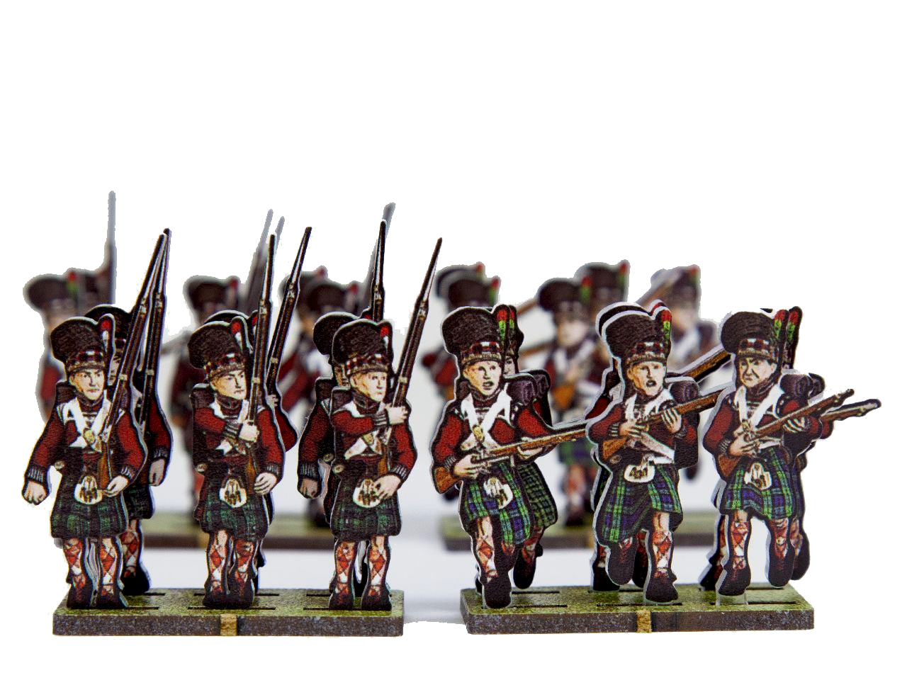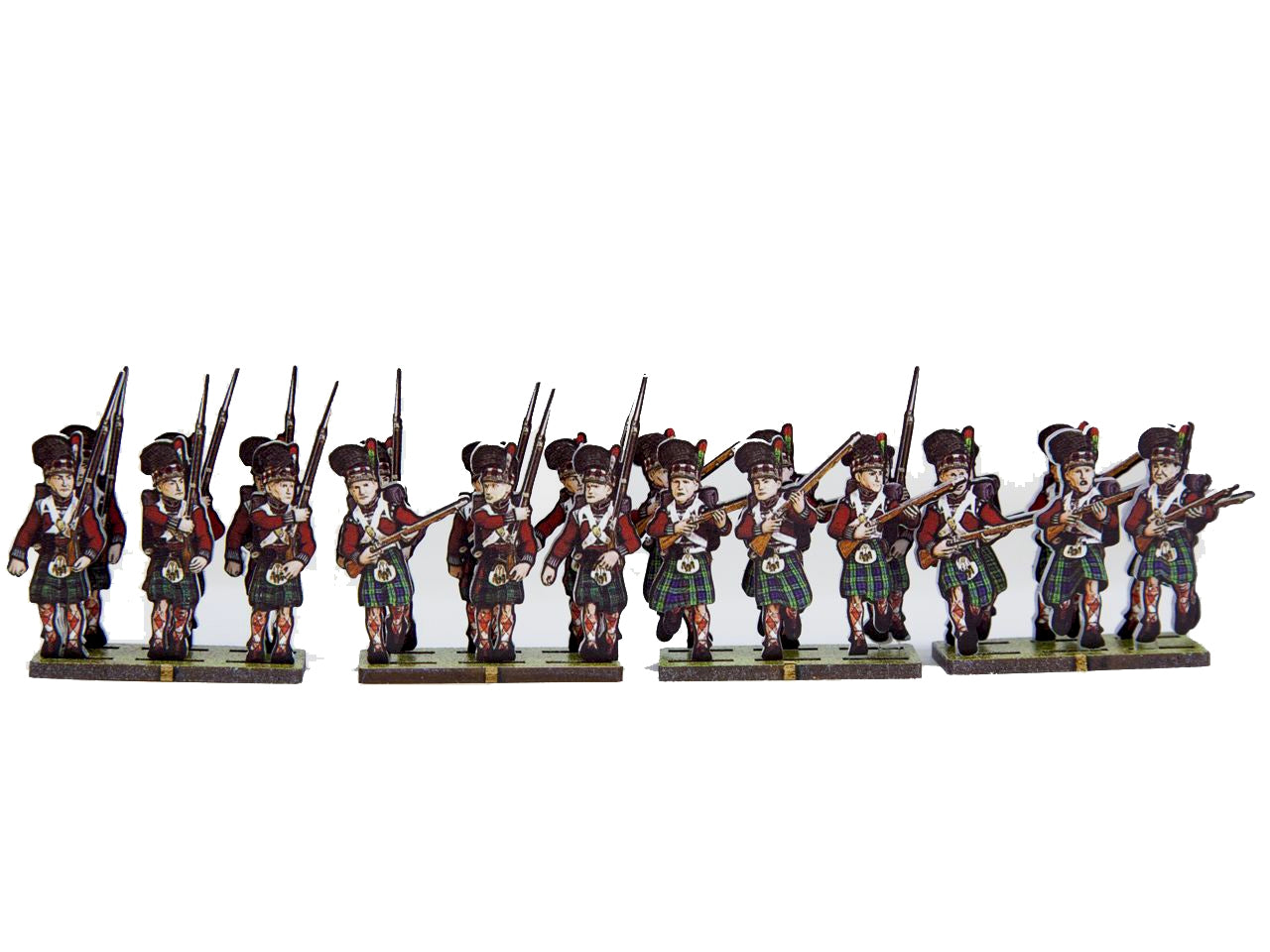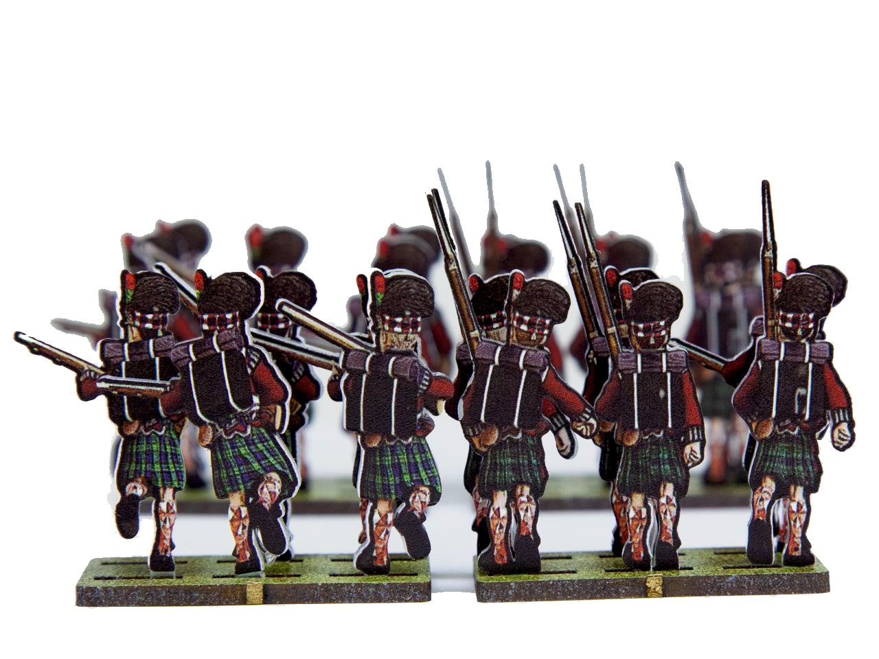 The 42nd Black Watch Flank Set is crafted on a 15x20 cm Plexiglass sprue and includes: