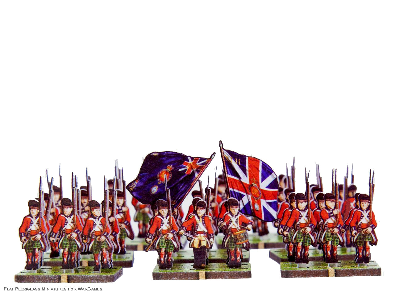 The 42nd Regiment of Foot v2 Set is crafted on a 15x20 cm Plexiglass sprue and includes: