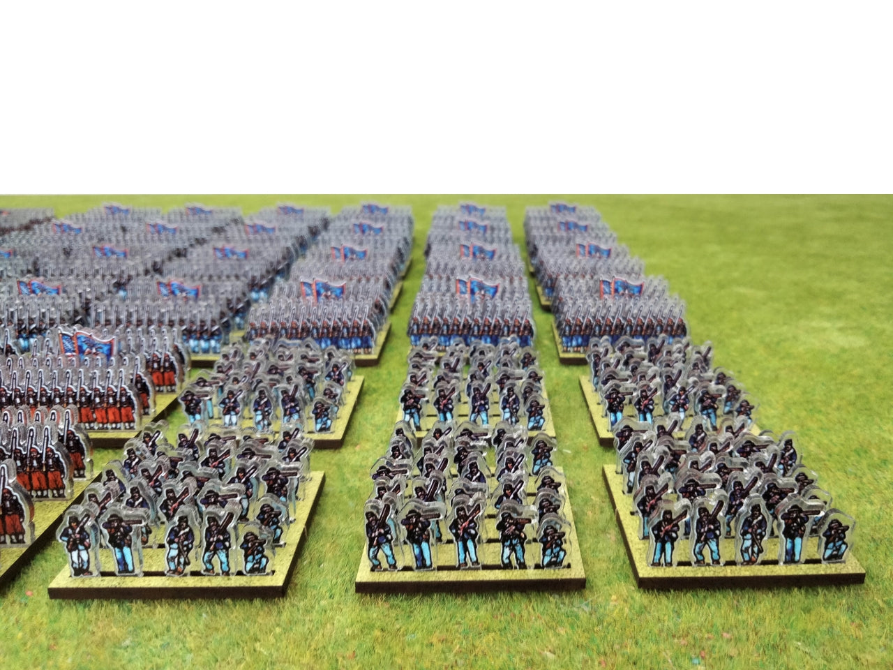 The 10mm American Civil War Full Pack contains 3560 figurines on 16 Plexiglass sprues, and includes all the regiments from the 10mm American Civil War collection.