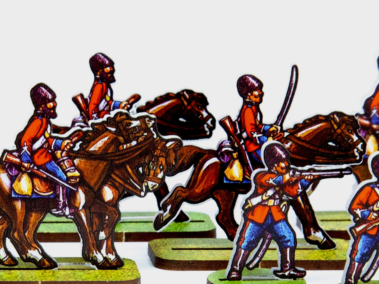- Cavalry bases are rectangular, 25 x 50 mm for 28mm, and 20 x 35 mm for 18mm.