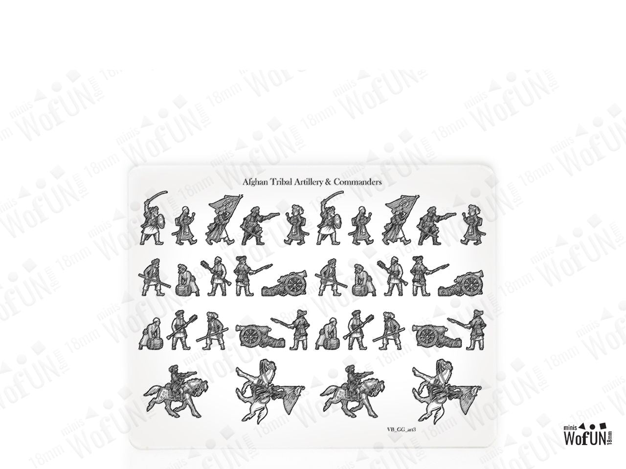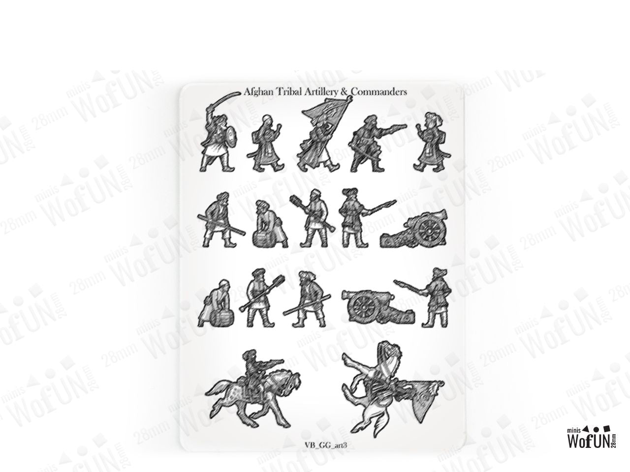 The Afghan Tribal Artillery & Commanders Set is crafted on a 15x20 cm Plexiglass sprue and includes: