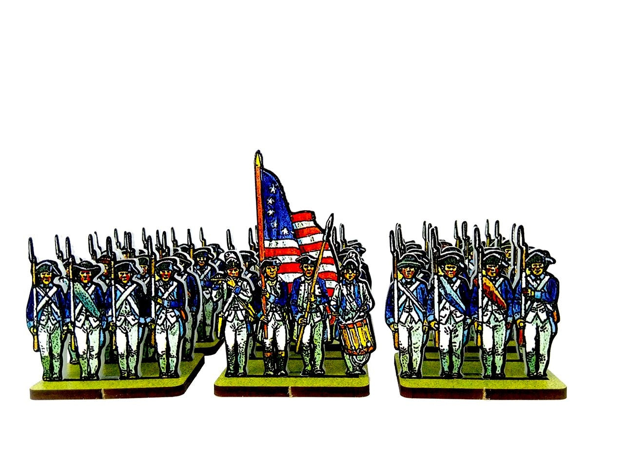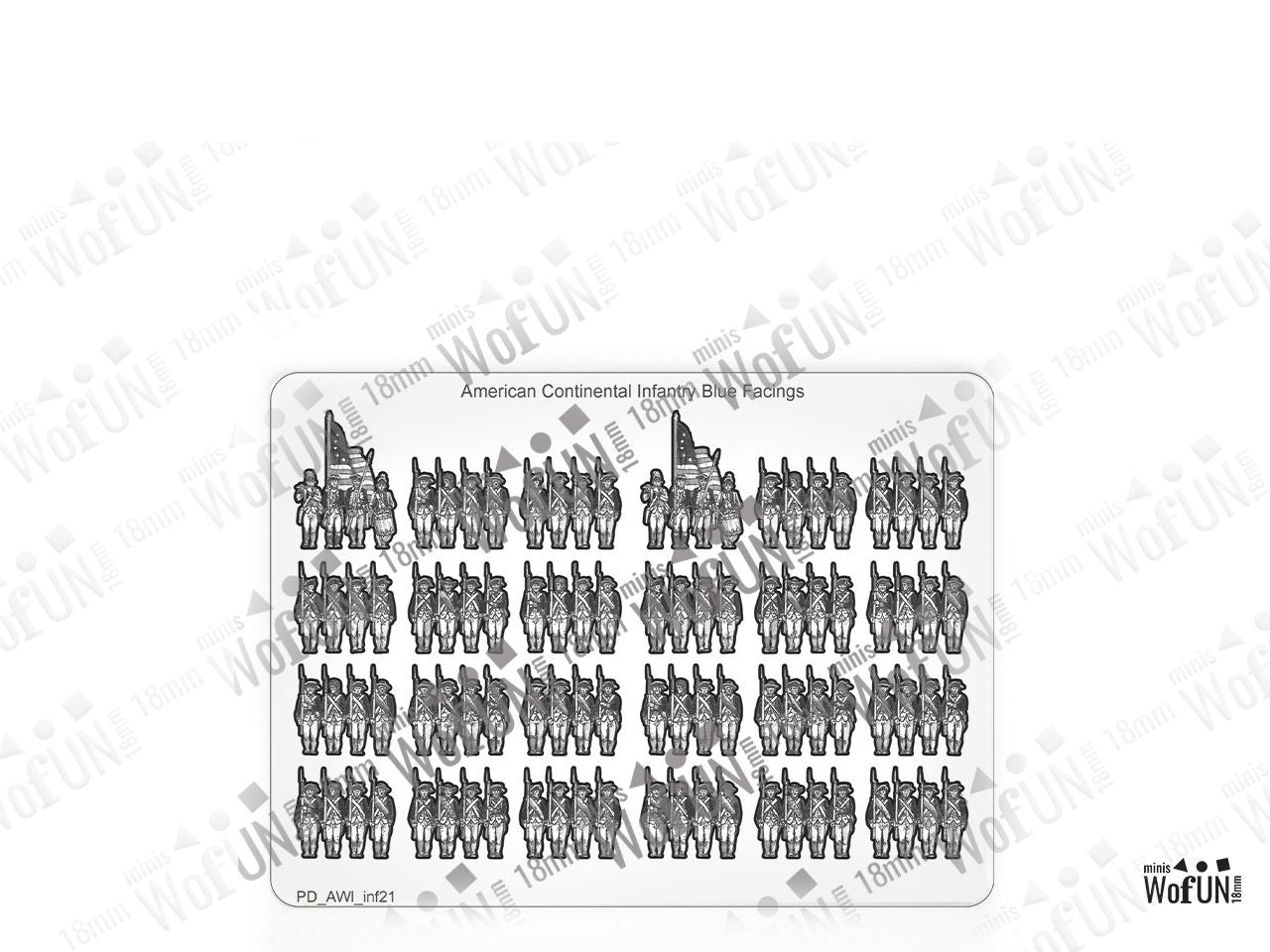The American Continental Infantry Blue Facings Set is crafted on a 15x20 cm Plexiglass sprue and includes: