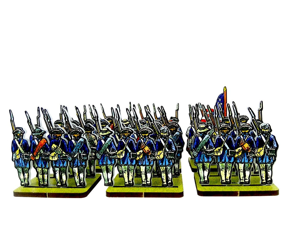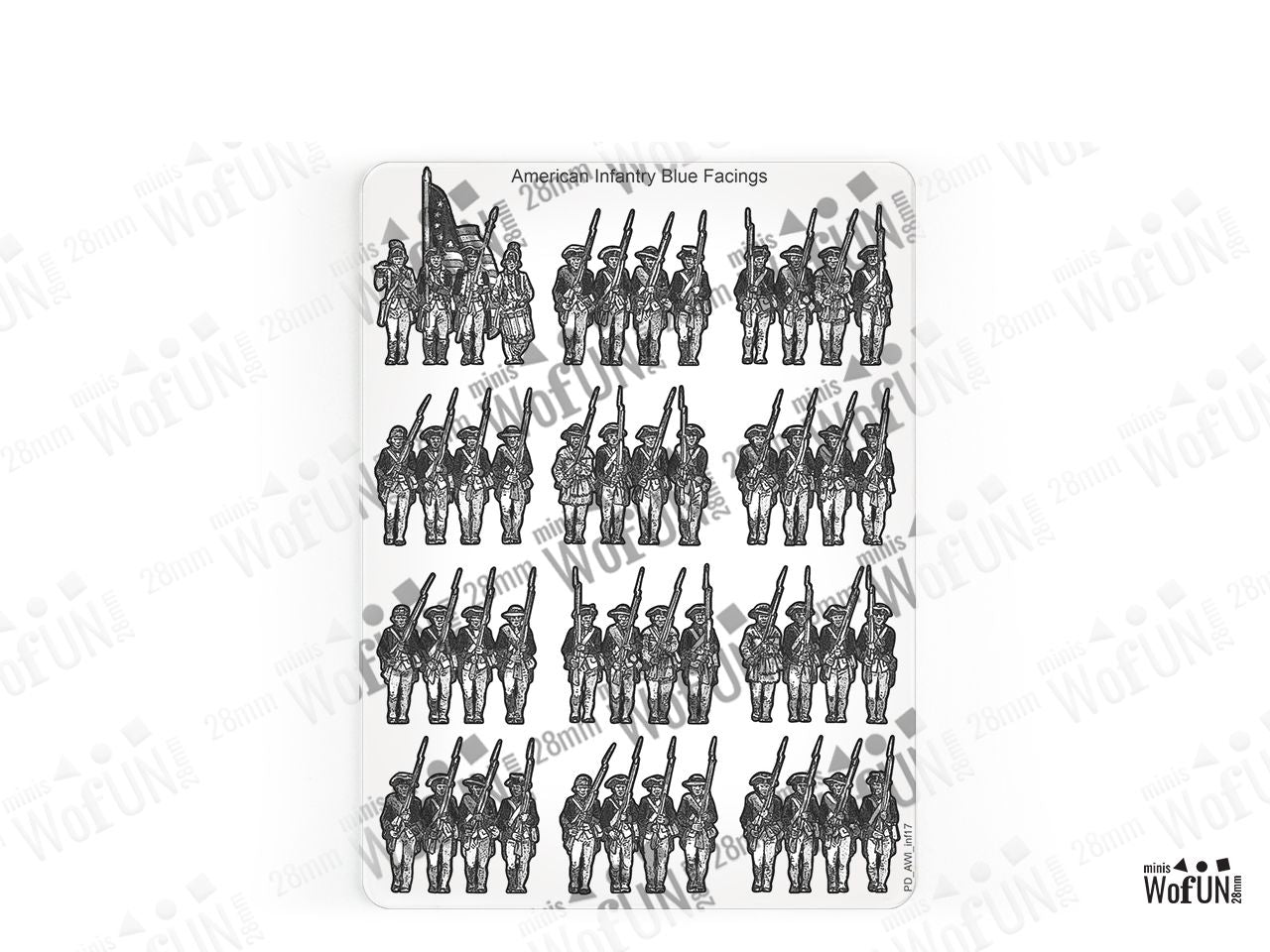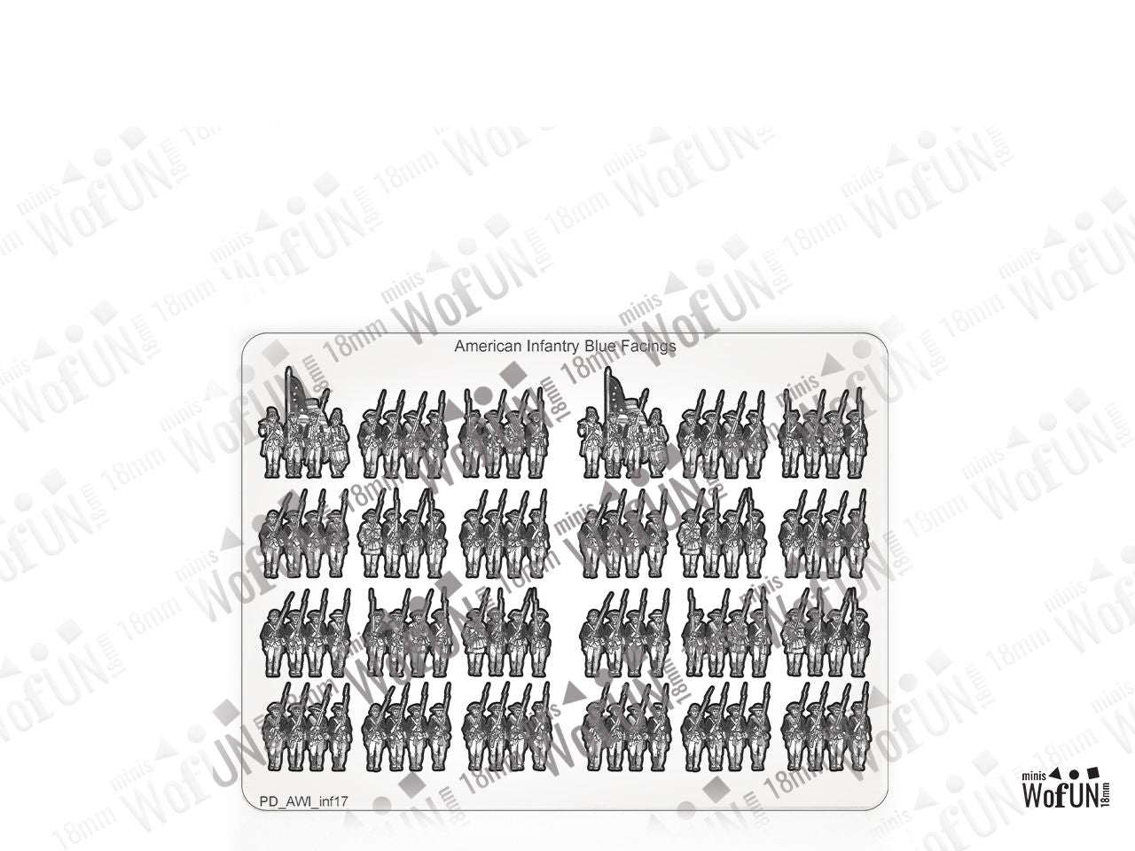 The American Infantry Blue Facings Set is crafted on a 15x20 cm Plexiglass sprue and includes: