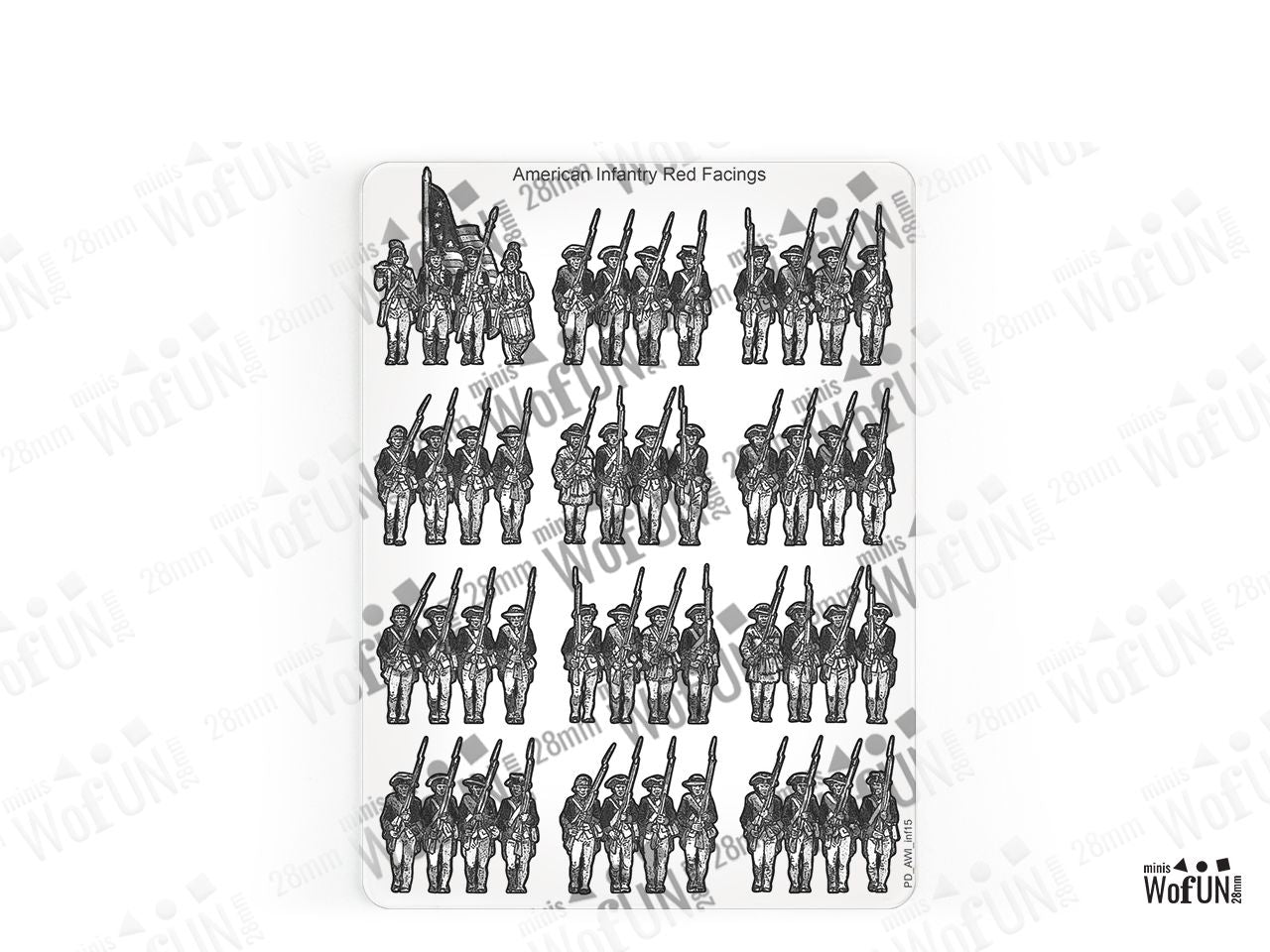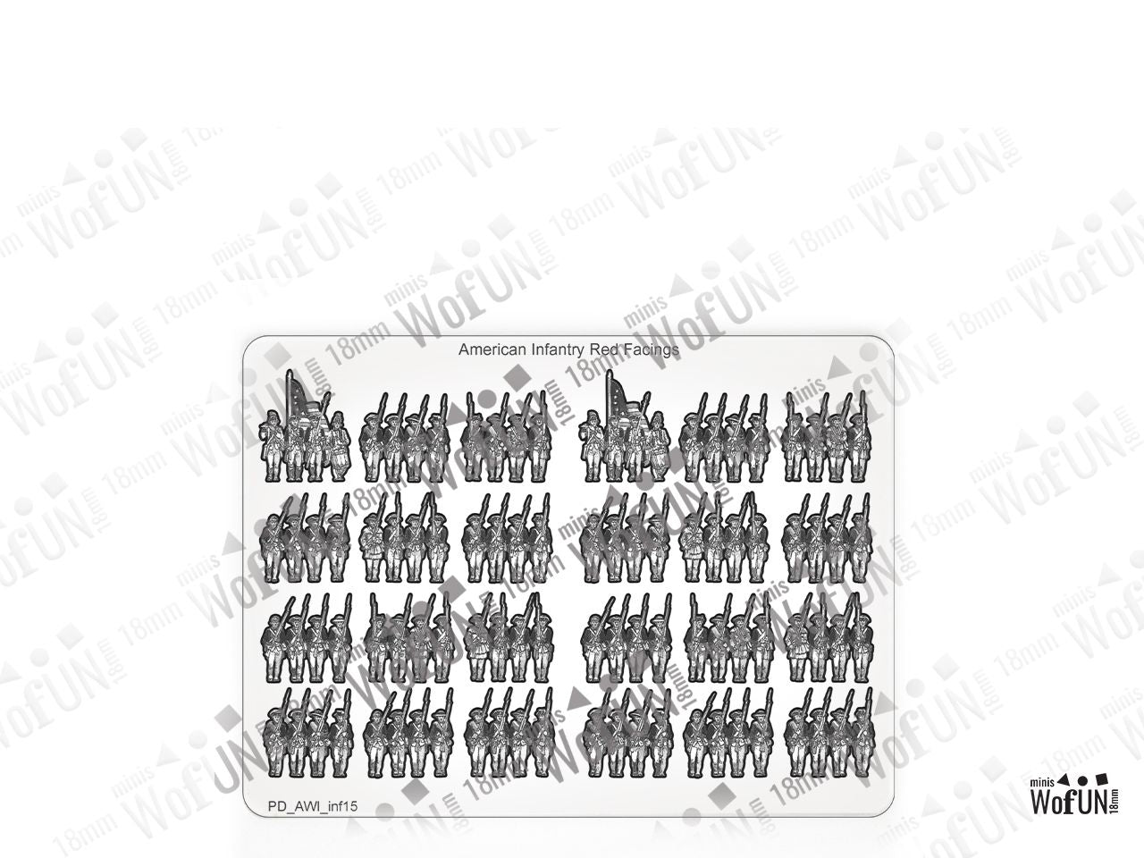 The American Infantry Red Facings Set is crafted on a 15x20 cm Plexiglass sprue and includes: