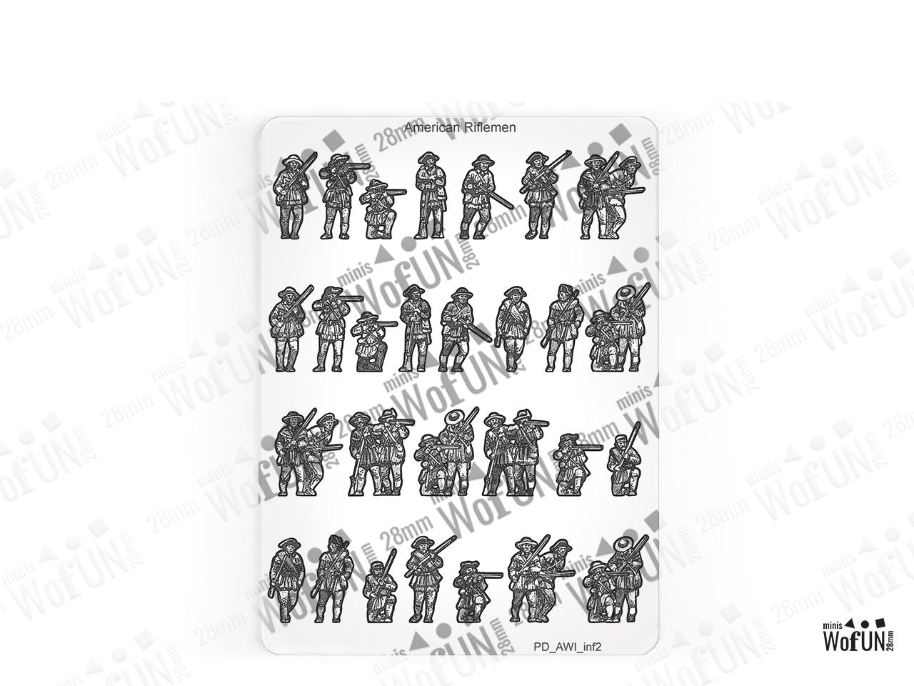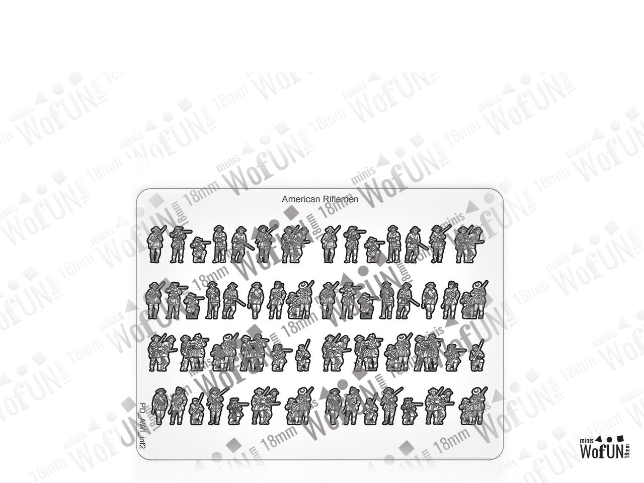 The American Riflemen Set is crafted on a 15x20 cm Plexiglass sprue and includes: