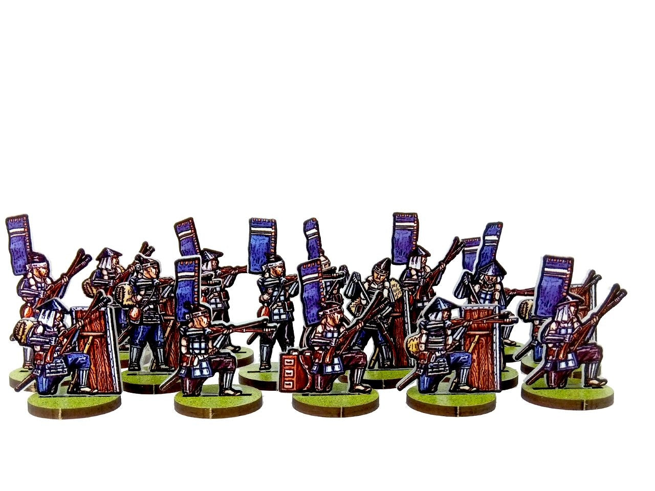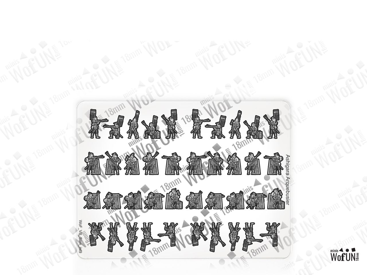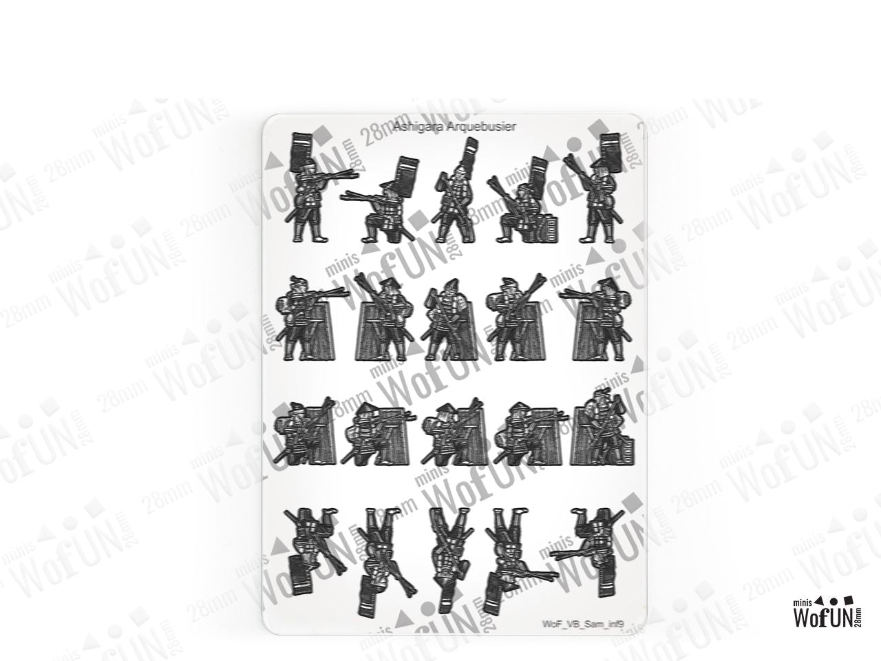 The Ashigaru Arquebusier Set is crafted on a 15x20 cm Plexiglass sprue and includes: