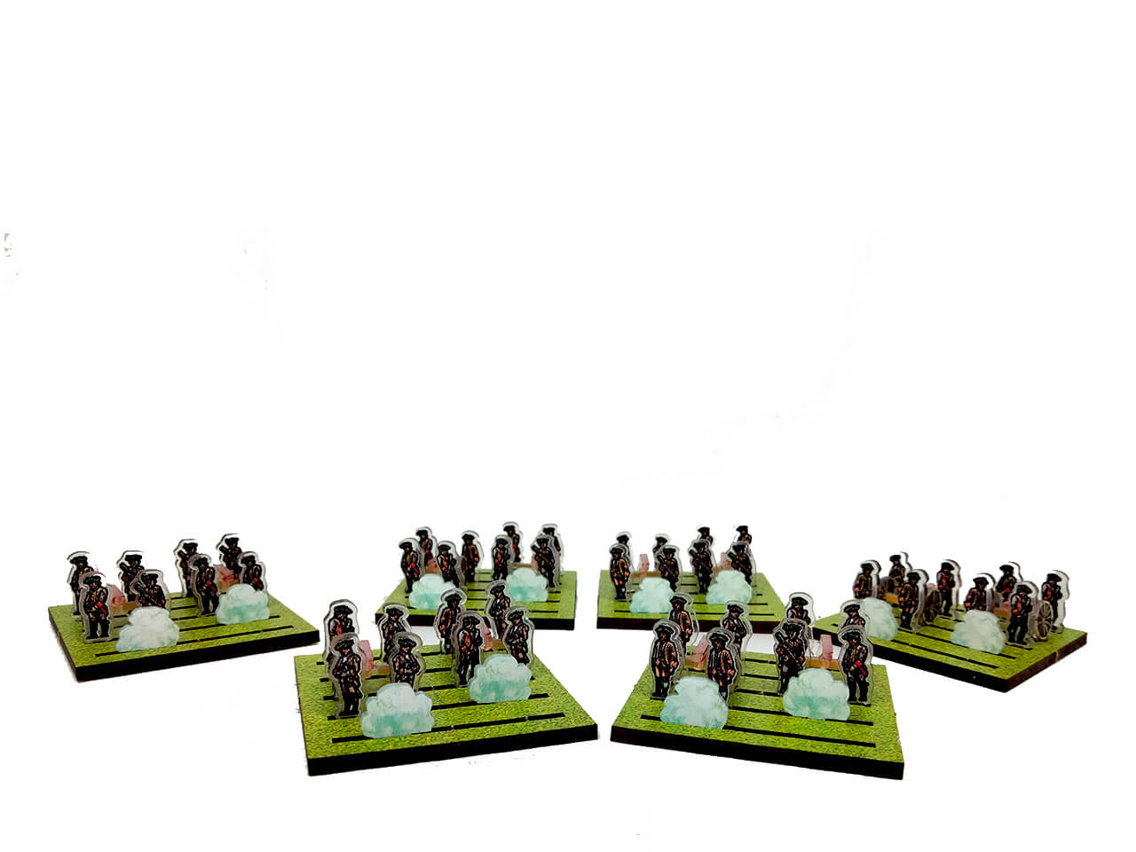 By choosing the WoFun Standard Bases Option, the required bases for crafting the teams and guns will be included. The bases are made from MDF (2.5 mm thick) featuring pre-cut slots for easy insertion of figurines. Each base is printed on one side with a green (grass) texture.