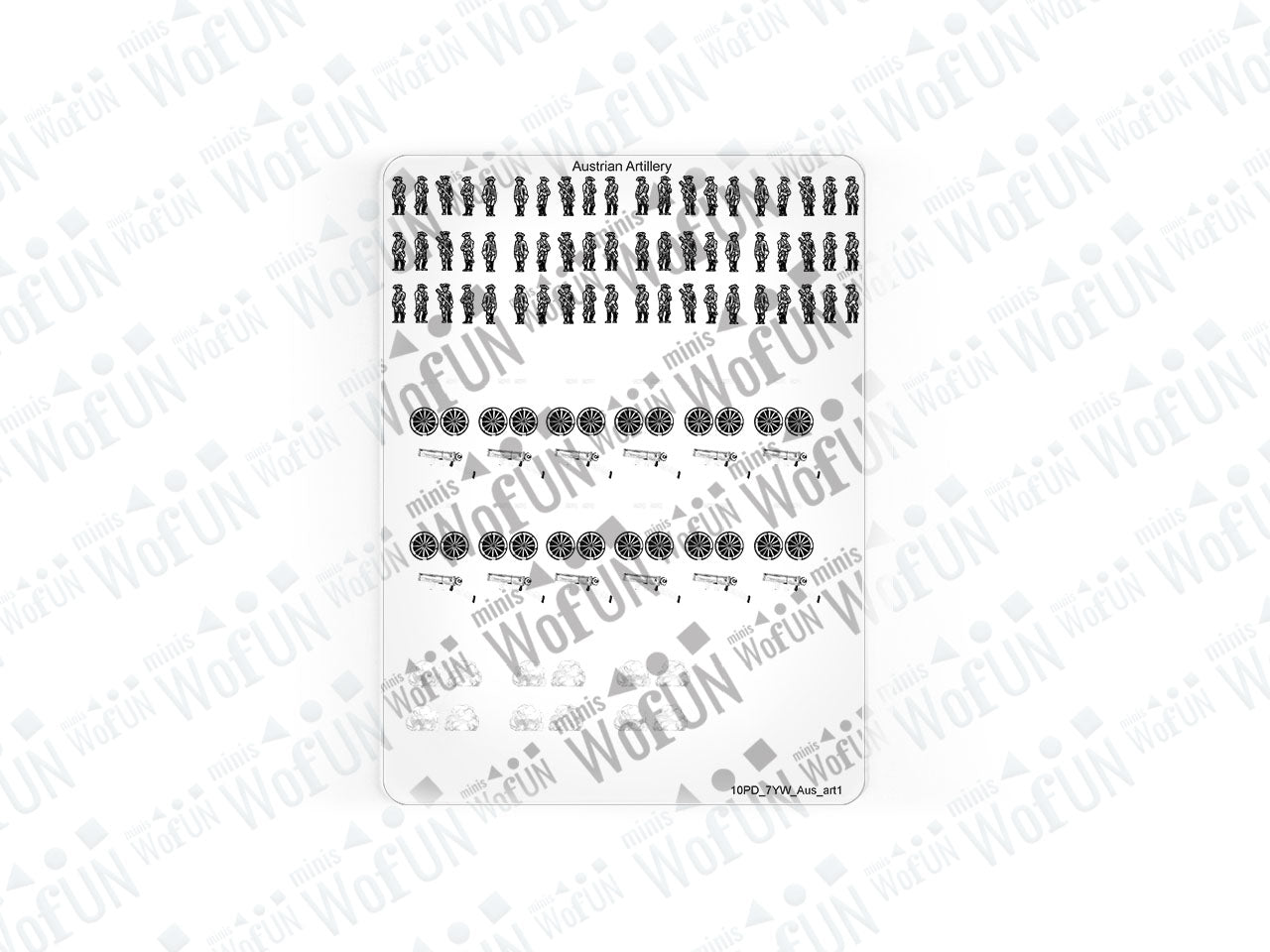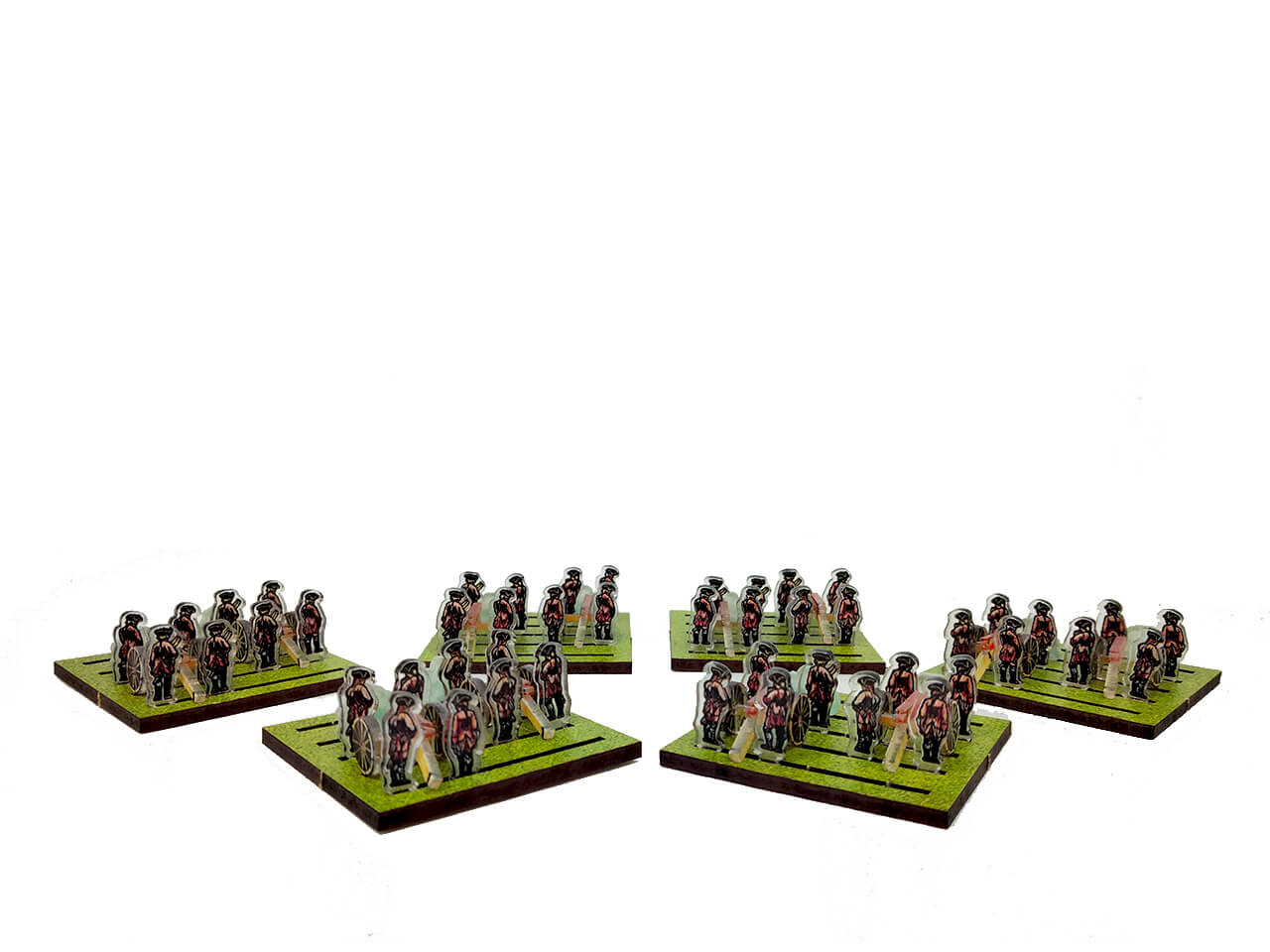 The Austrian Artillery Addon contains 48 figurines in total (individuals or groups), and 6 guns.