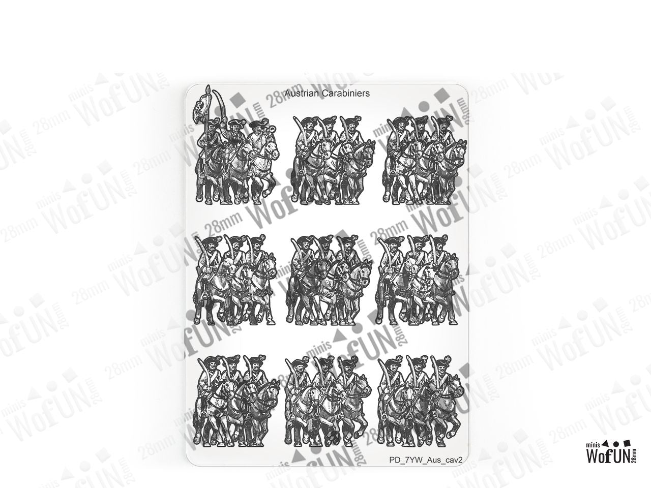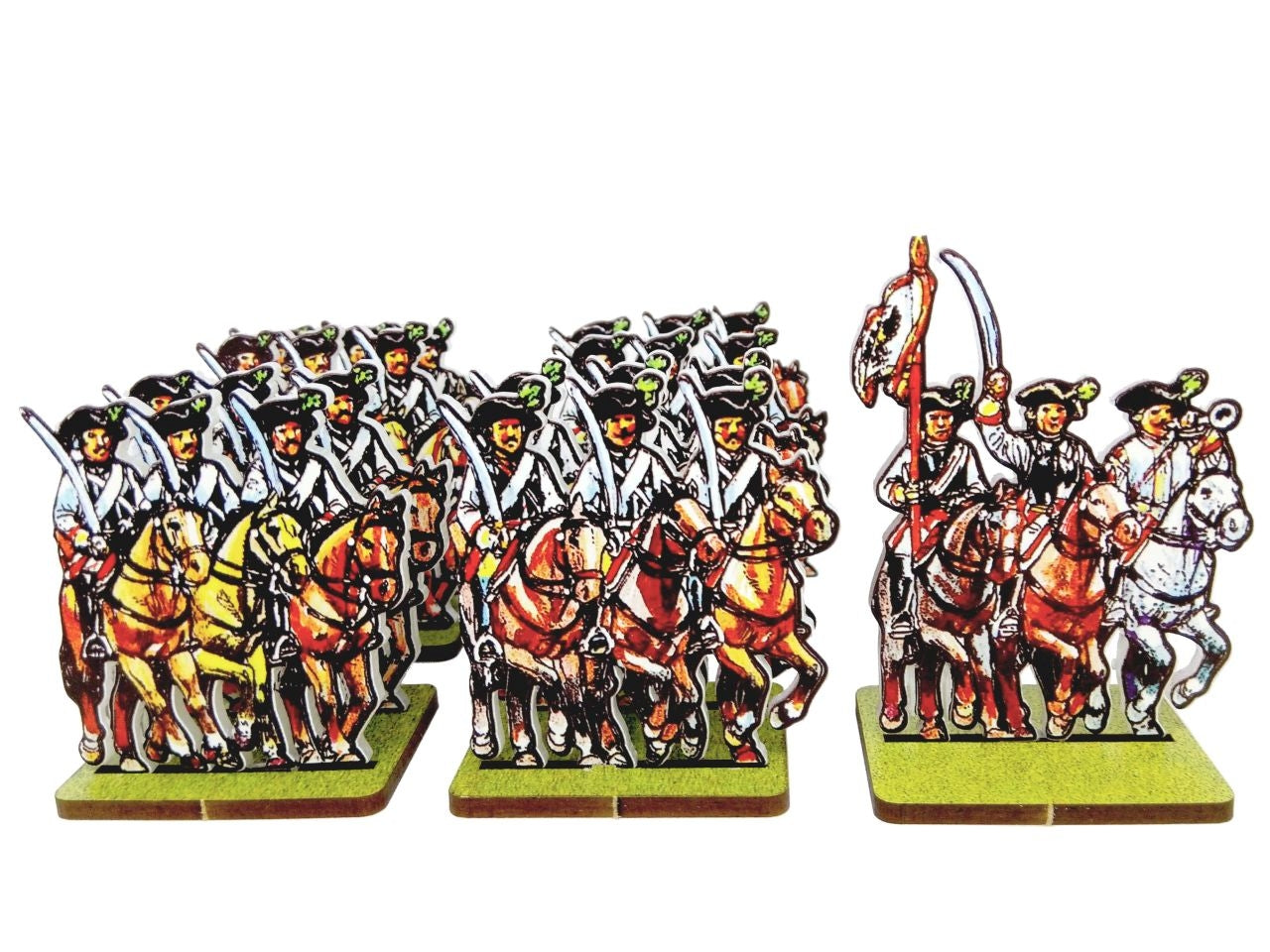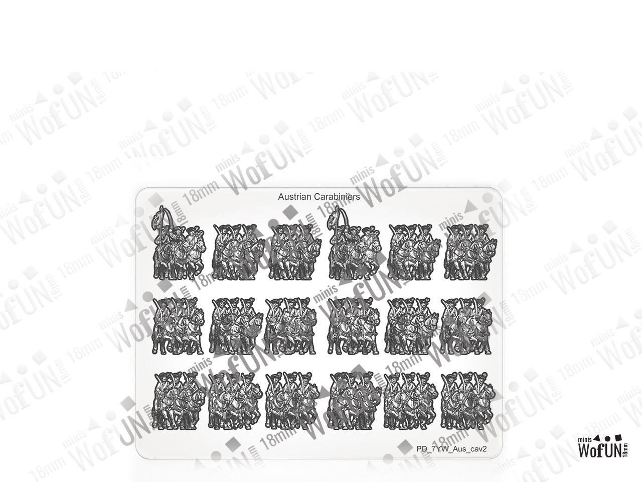 The Austrian Carabiniers-Elite Cuirassiers Squadron Set is crafted on a 15x20 cm Plexiglass sprue and includes: