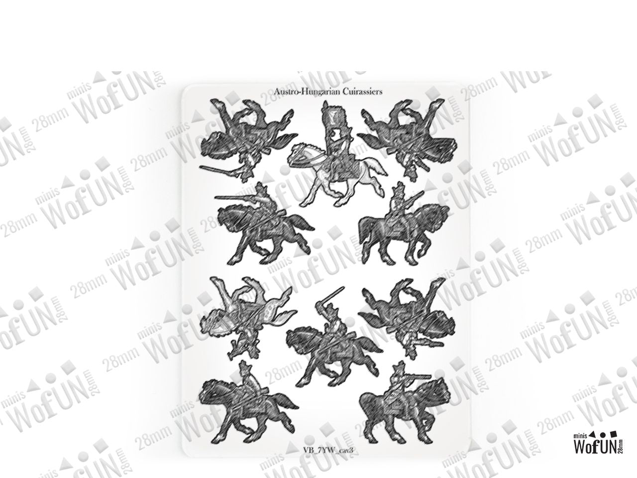 The Austrian Cuirassiers Set is crafted on a 15x20 cm Plexiglass sprue and includes: