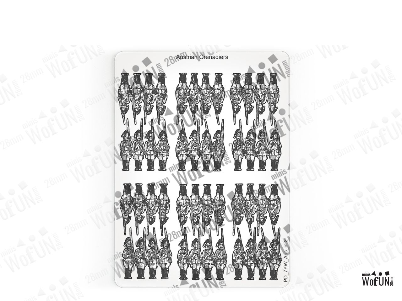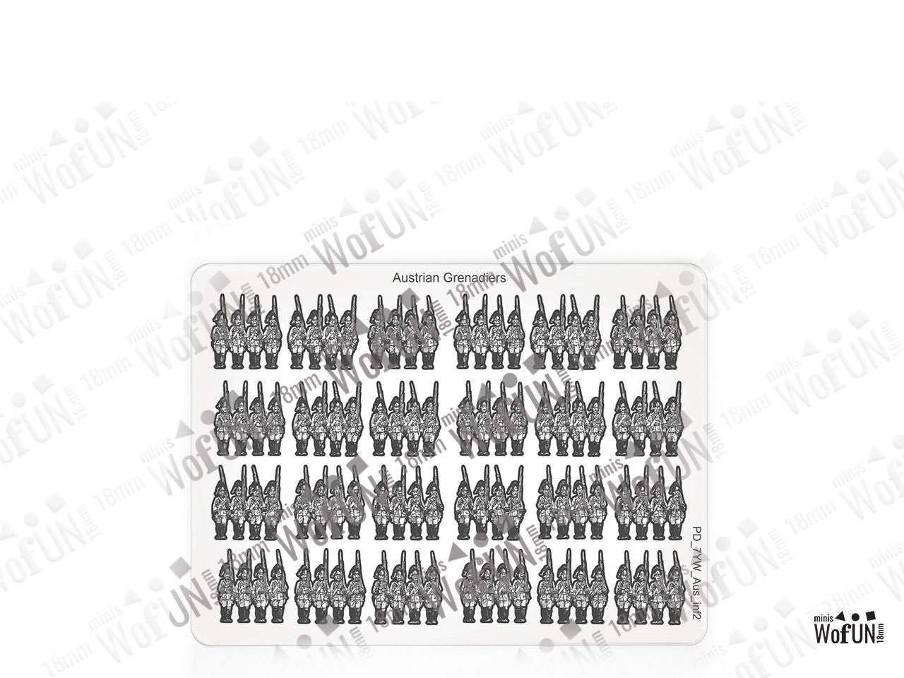 The Austrian German Grenadiers Set is crafted on a 15x20 cm Plexiglass sprue and includes: