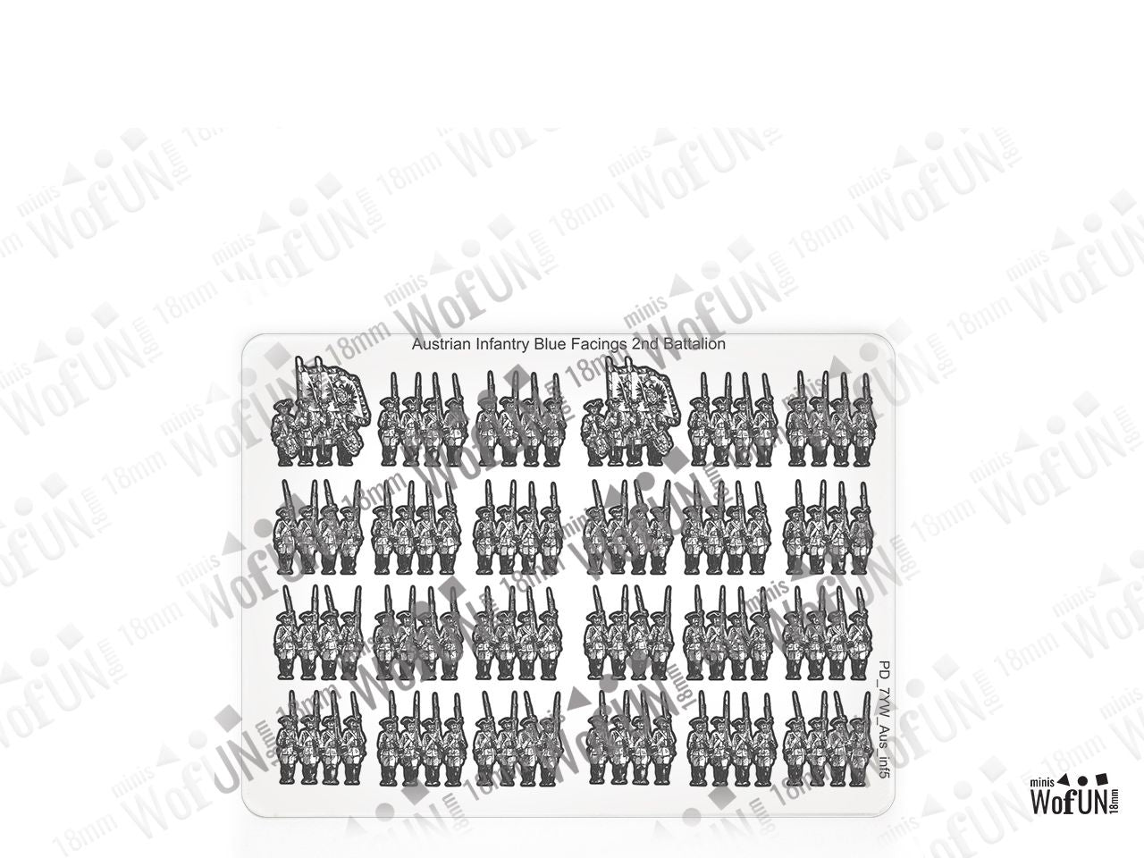 The Austrian German Infantry Blue Facings 2nd battalion Set is crafted on a 15x20 cm Plexiglass sprue and includes: