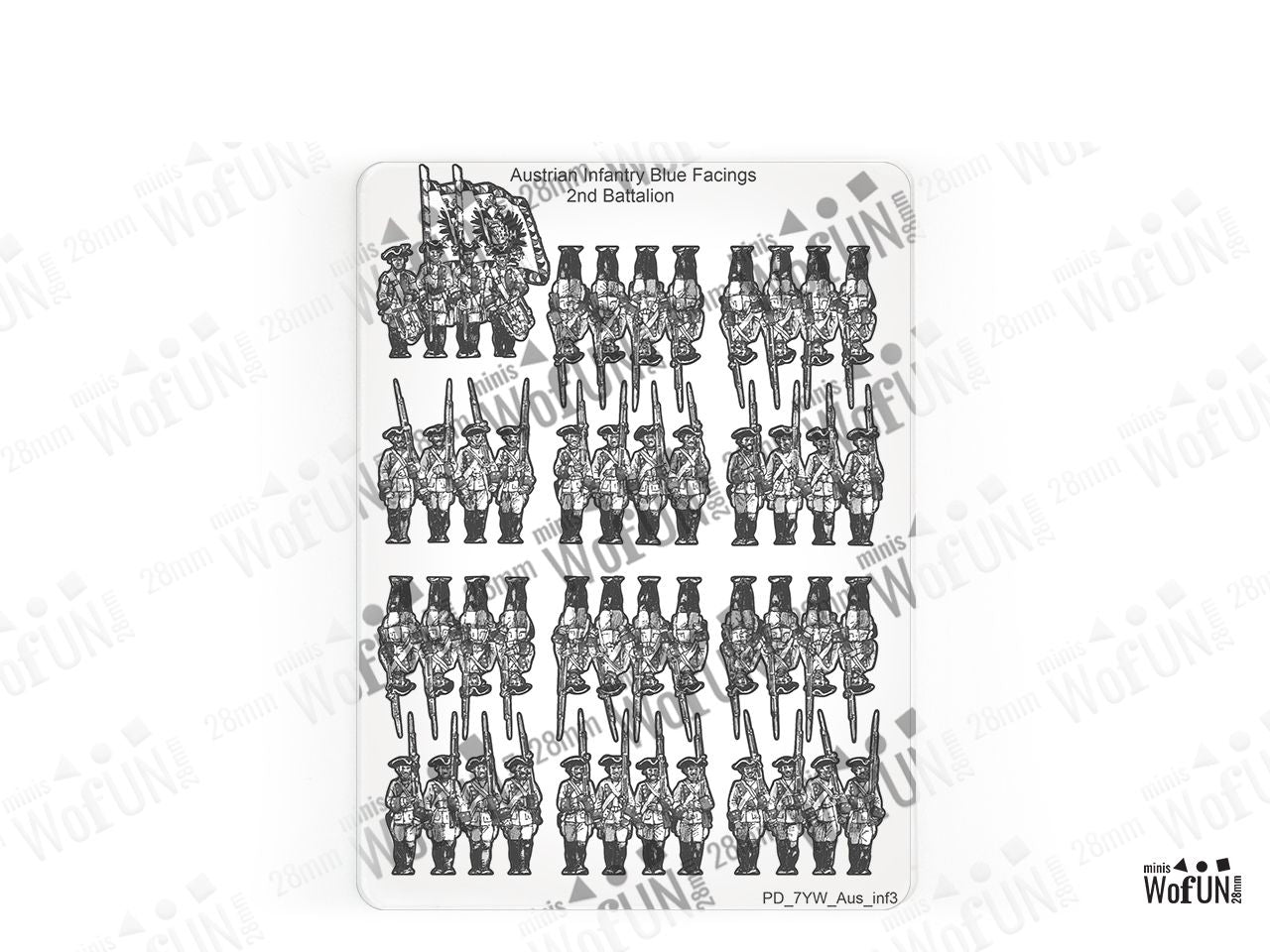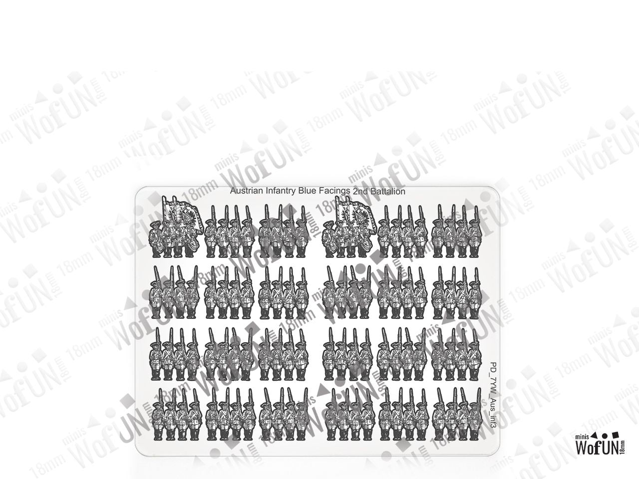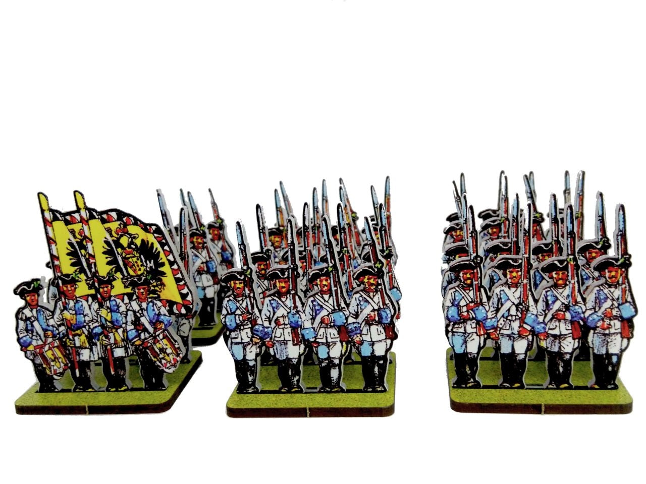 The Austrian German Infantry Light Blue Facings 2nd battalion Set is crafted on a 15x20 cm Plexiglass sprue and includes: