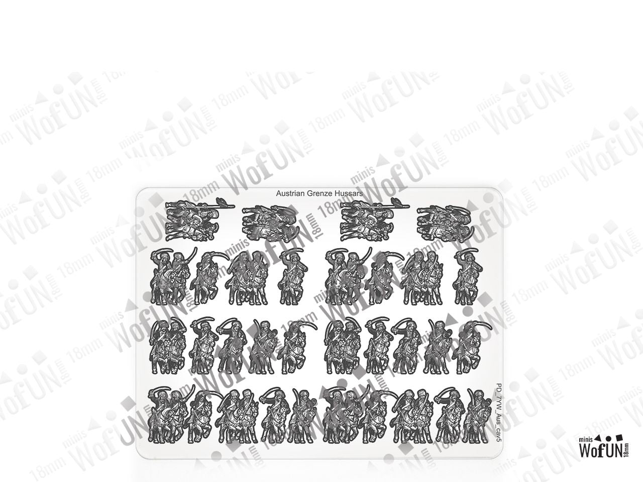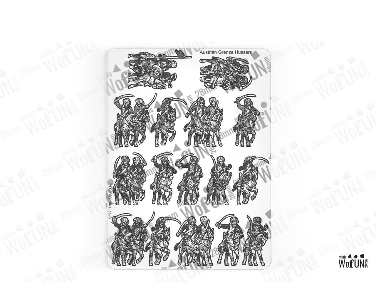 The Austrian Grenze Hussars. Carlstadter and Warasdiner Set is crafted on a 15x20 cm Plexiglass sprue and includes: