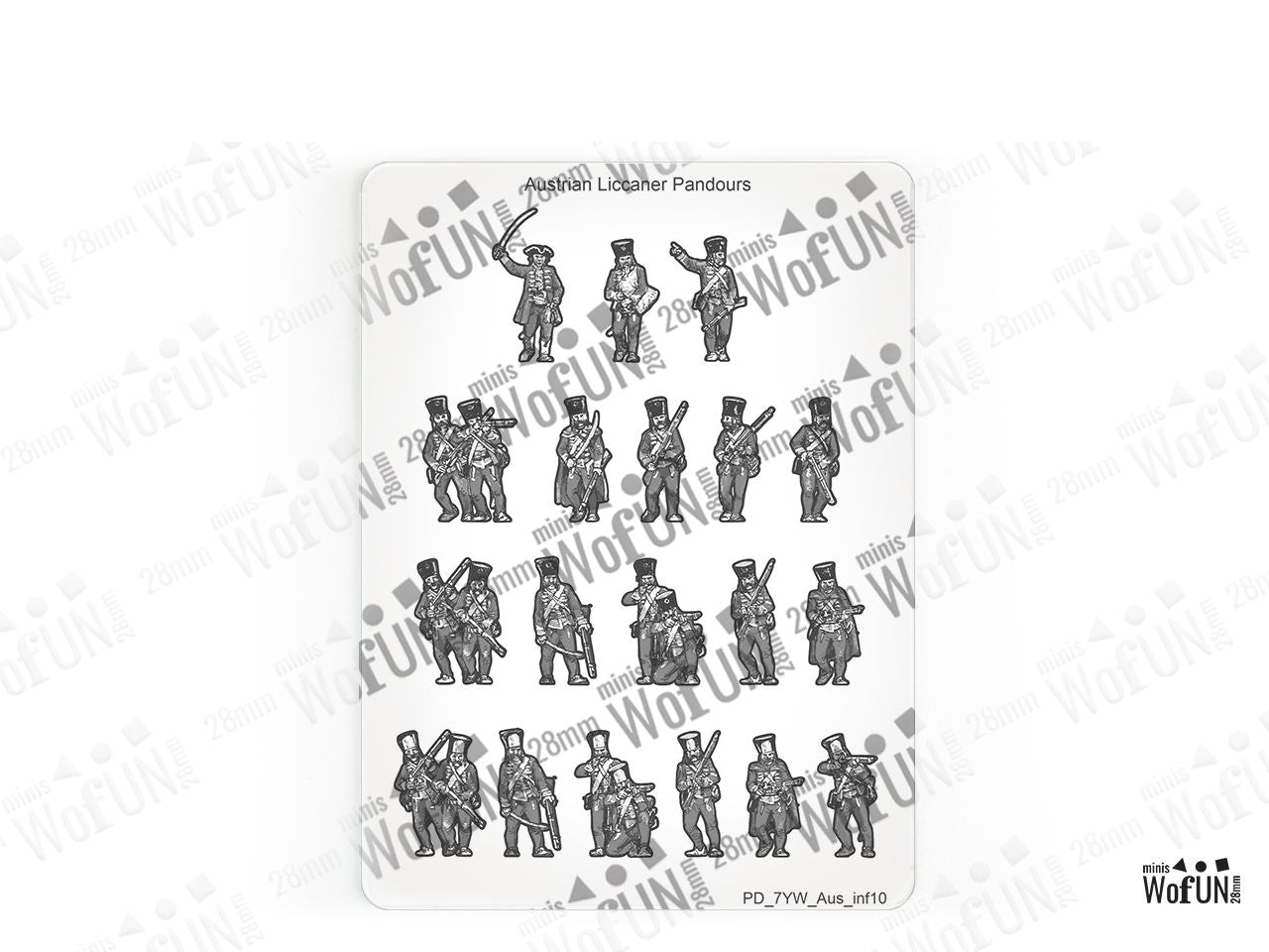 The Austrian Licaner Pandours Set is crafted on a 15x20 cm Plexiglass sprue and includes: