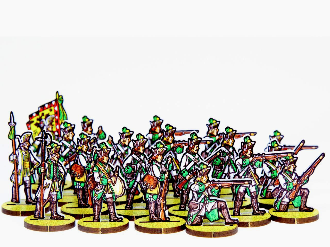 The Austrian Line Infantry Set is crafted on a 15x20 cm Plexiglass sprue and includes: