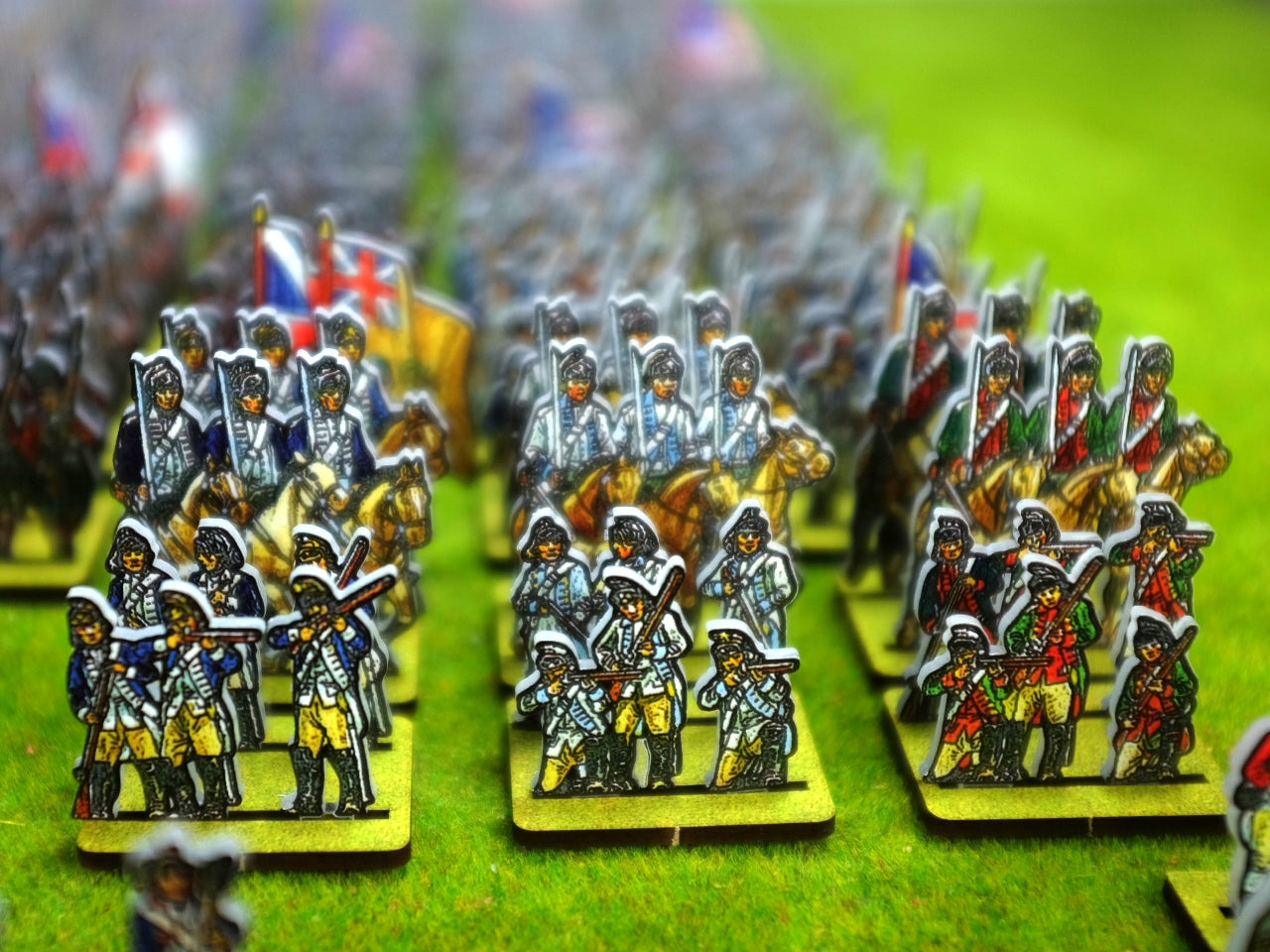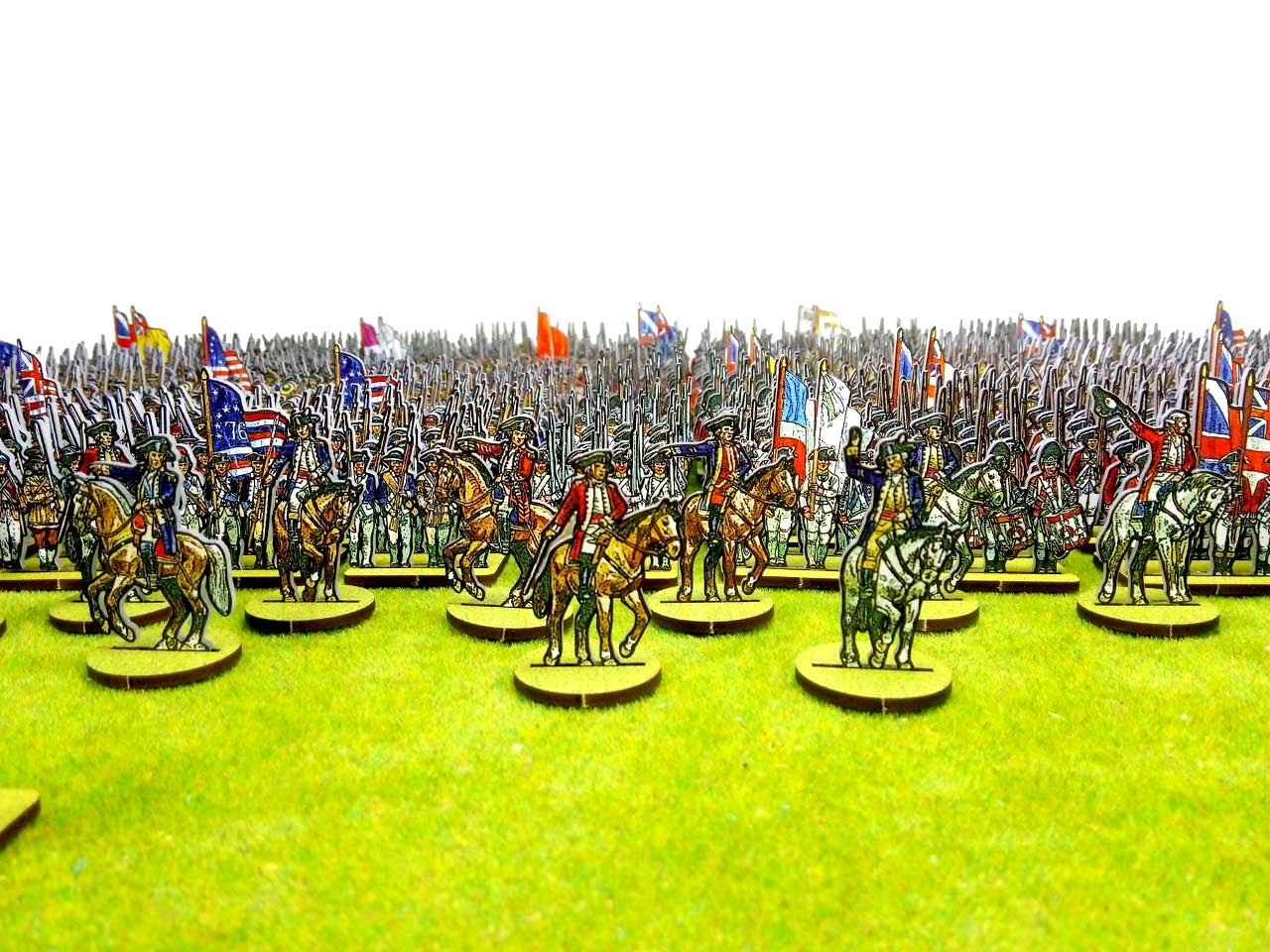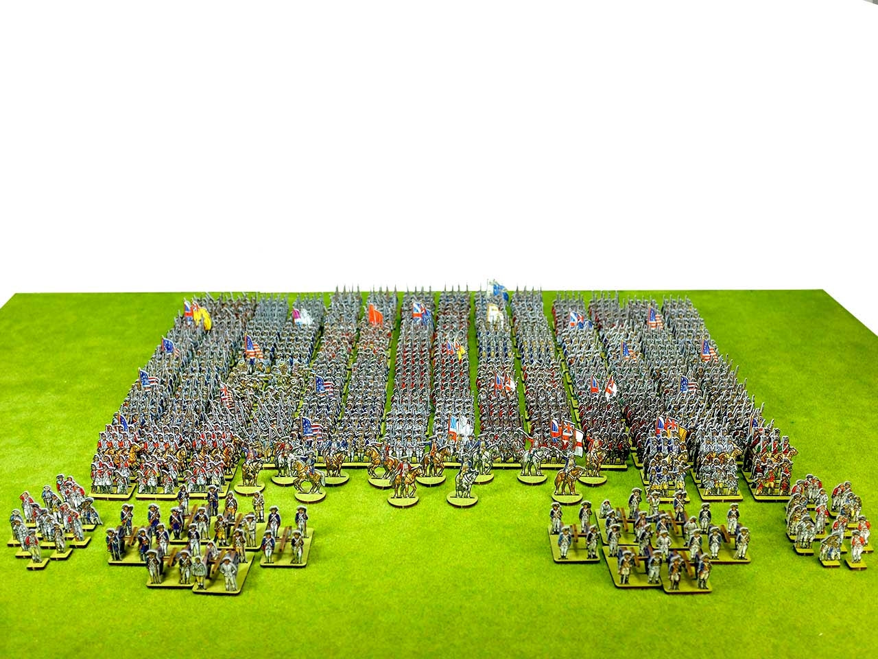 The 28mm American War of Independene Full Pack contains 1507 characters on 35 Plexiglass sprues, and includes all the regiments from the American Revolution - PD collection.