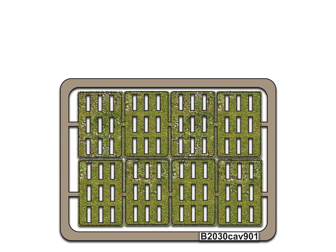 Our bases are crafted from pre-cut 2.5mm MDF (Medium Density Fiberboard) and come printed in green with a grass texture.
