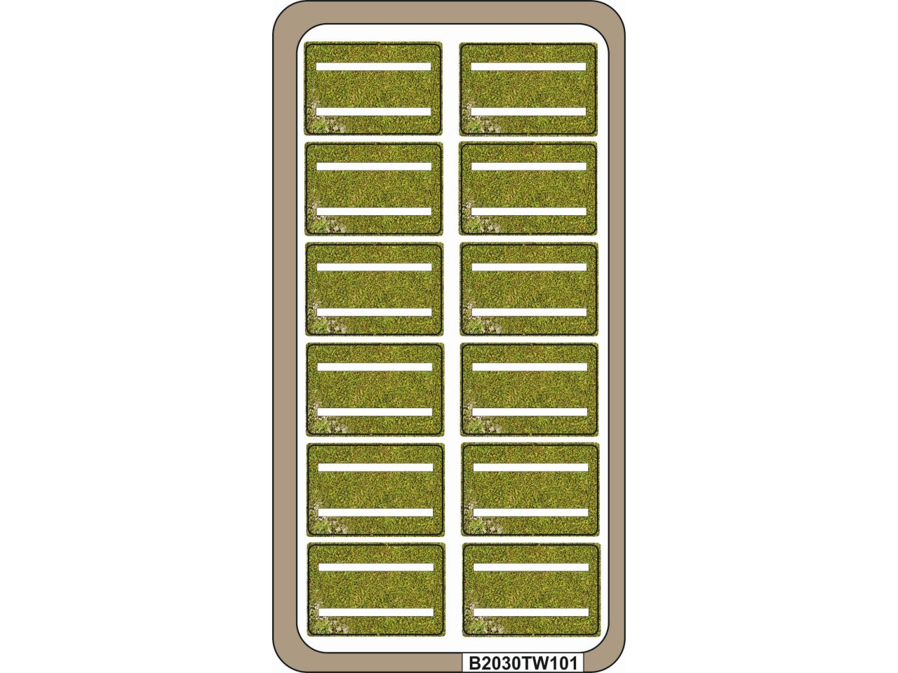 Our bases are crafted from pre-cut 2.5mm MDF (Medium Density Fiberboard) and come printed in green with a grass texture.