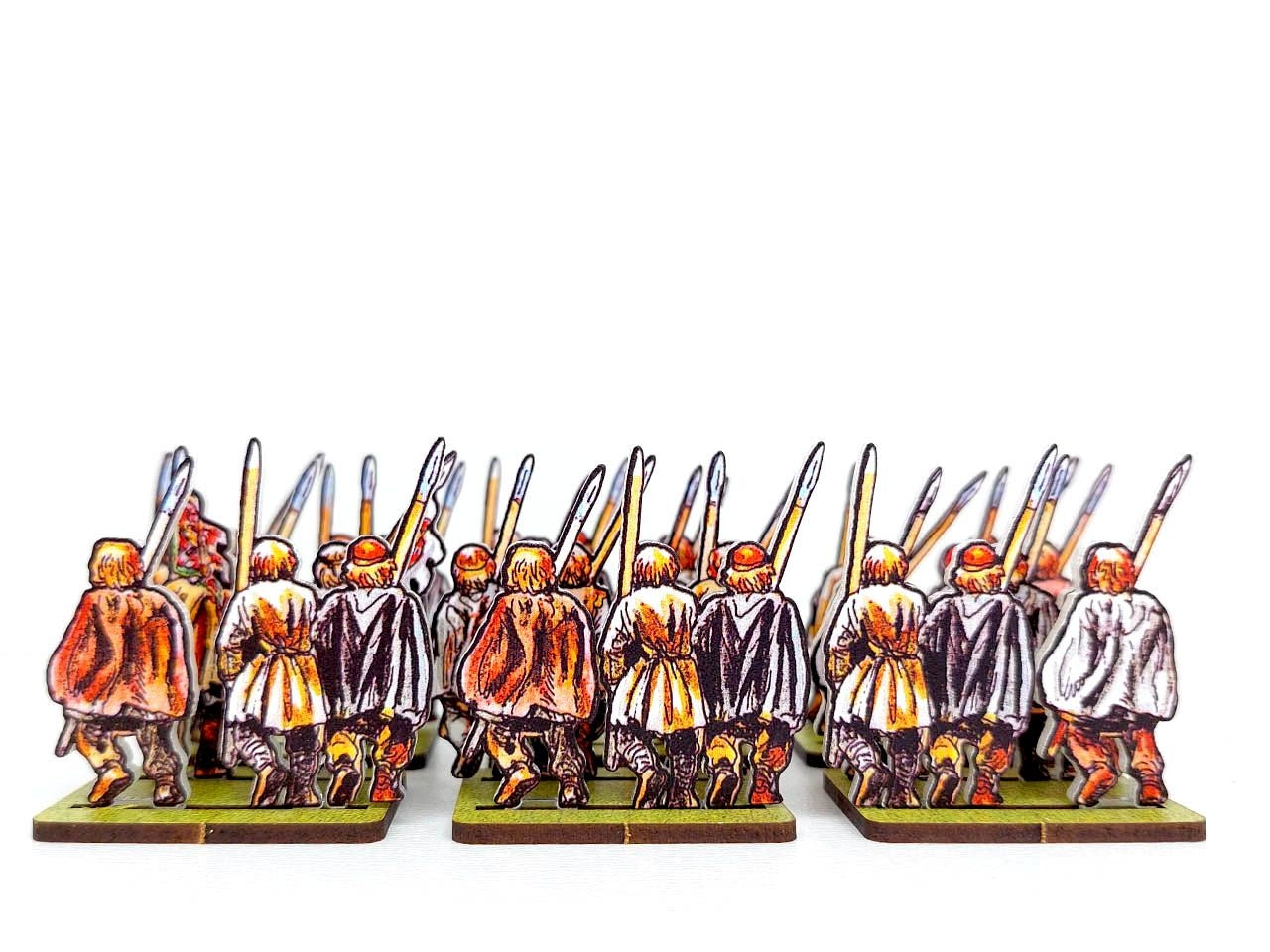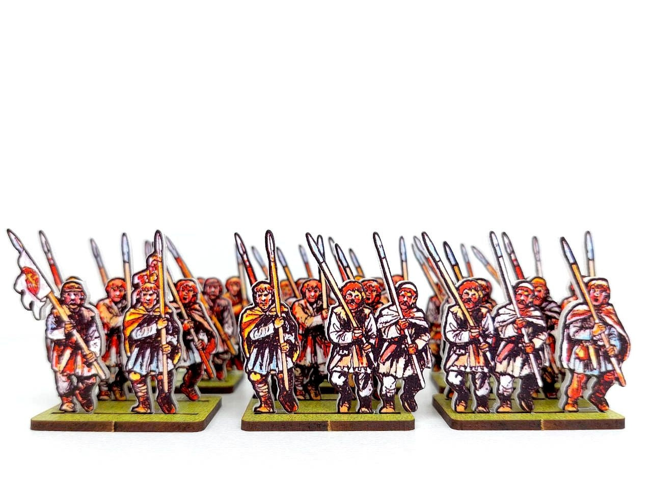 The Baltic Tribes Spearmen Set is crafted on a 15x20 cm Plexiglass sprue and includes: