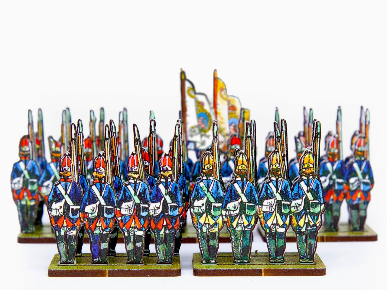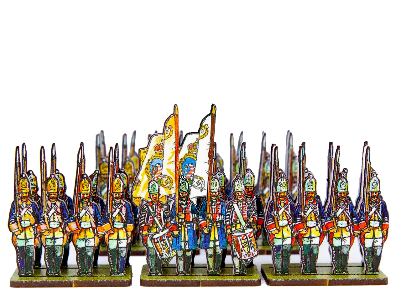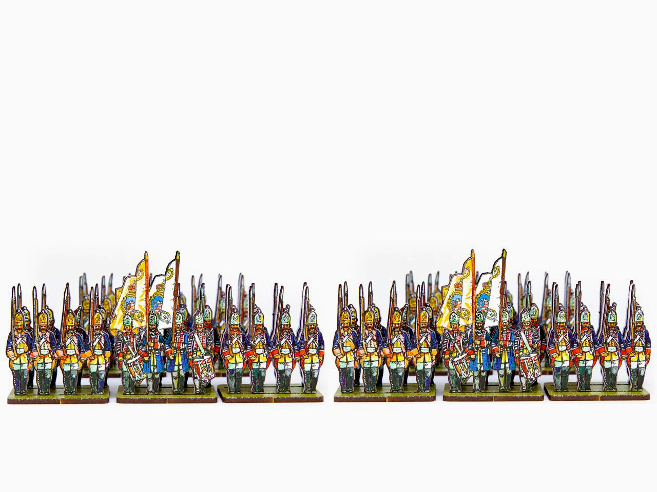 The British Army Hessian Grenadiers Set is crafted on a 15x20 cm Plexiglass sprue and includes: