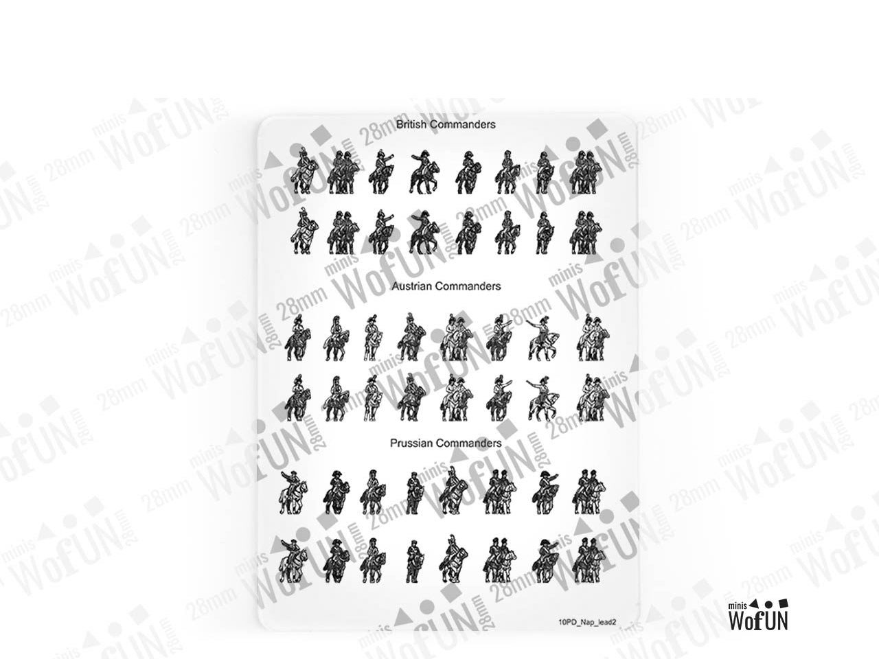 The British, Austrian and Prussian Commanders Addon contains 48 figurines in total (individuals or goups). Please check the images of the product to see the content of this addon.
