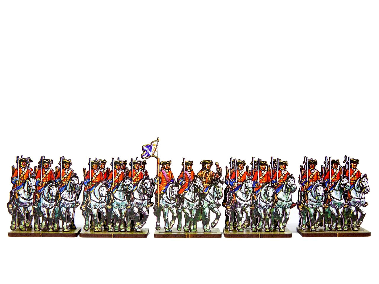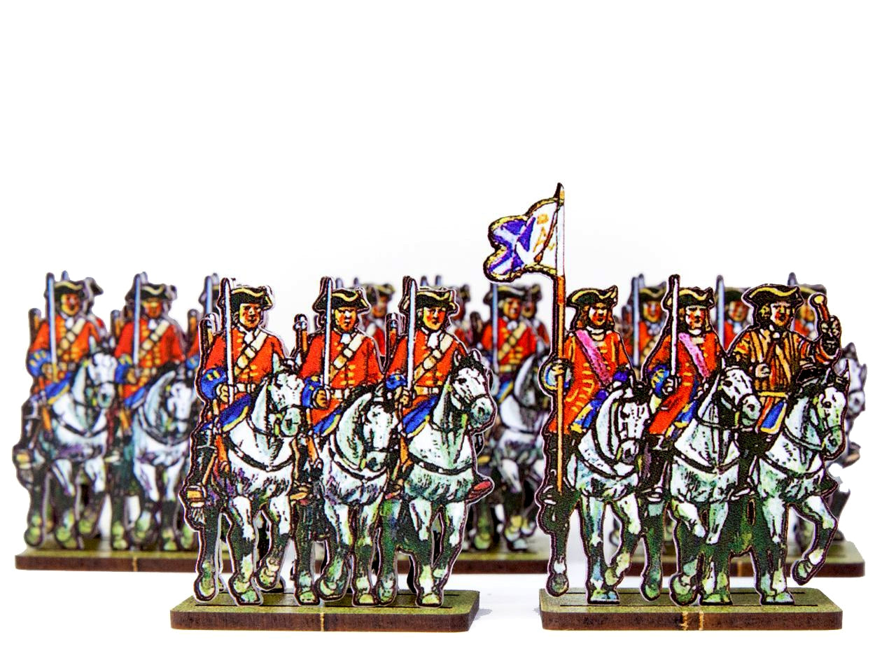 The British Dragoons, Hay’s regiment (Scots Greys) Set is crafted on a 15x20 cm Plexiglass sprue and includes: