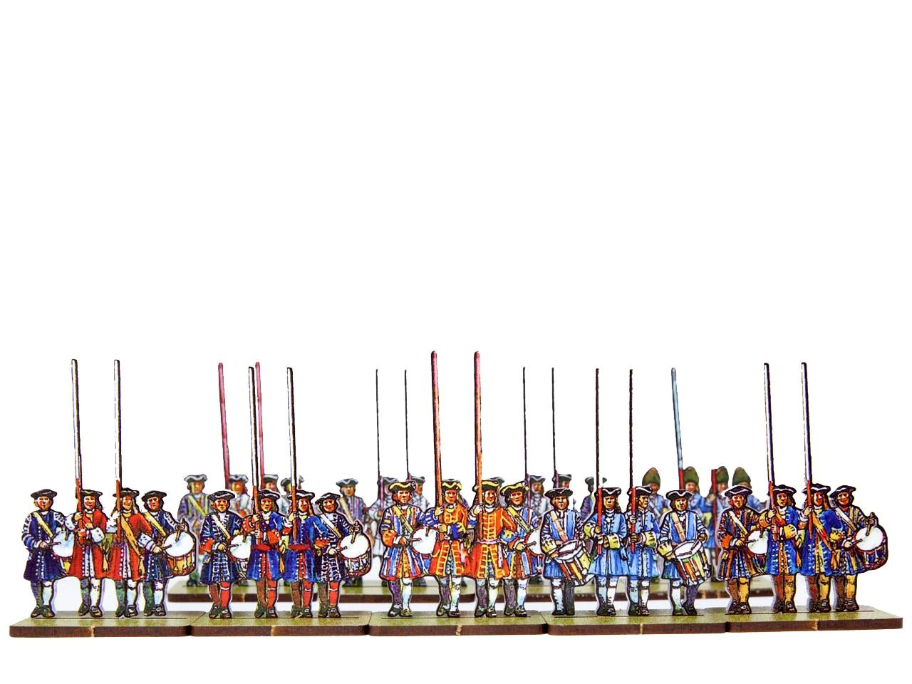 The British/Dutch Infantry Flag Bearers v.1 Set is crafted on a 15x20 cm Plexiglass sprue and includes: