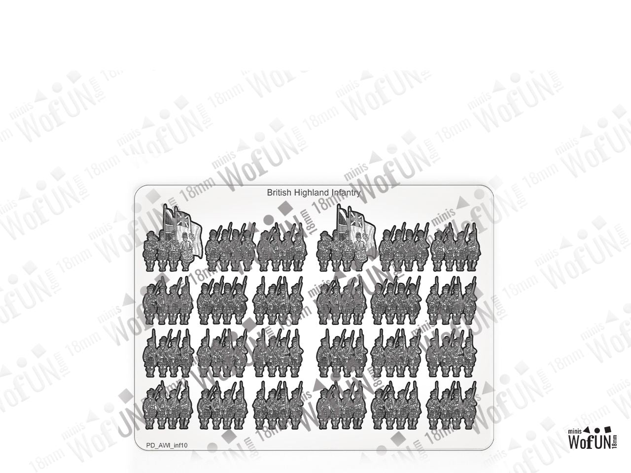 The British Highland Infantry Set is crafted on a 15x20 cm Plexiglass sprue and includes: