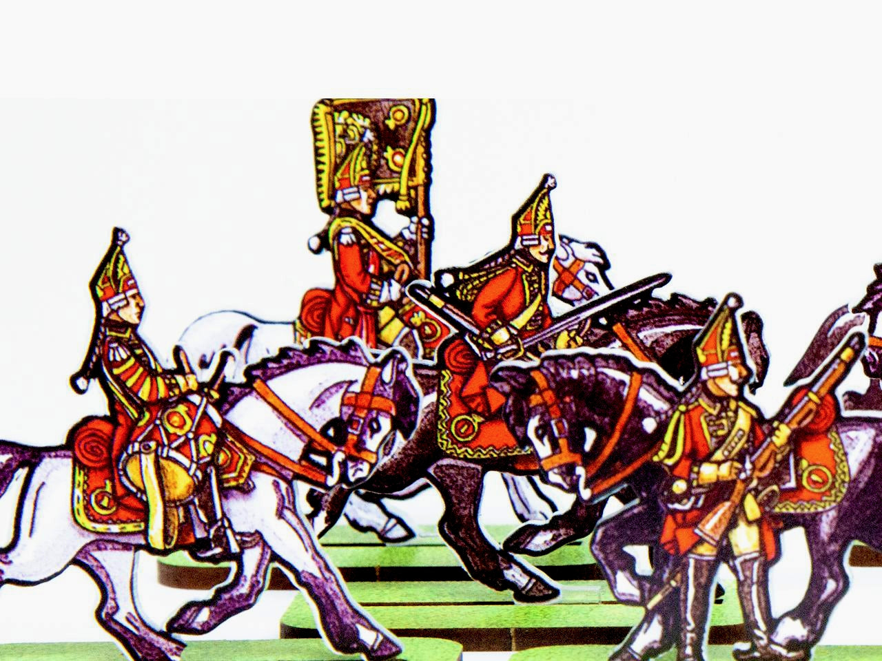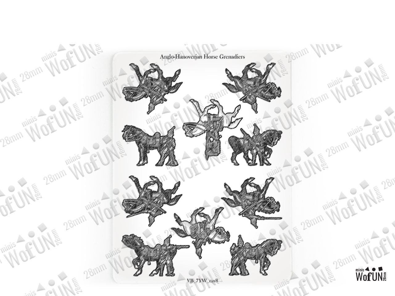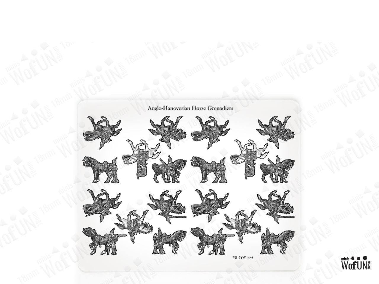 The British Horse Grenadiers Set is crafted on a 15x20 cm Plexiglass sprue and includes: