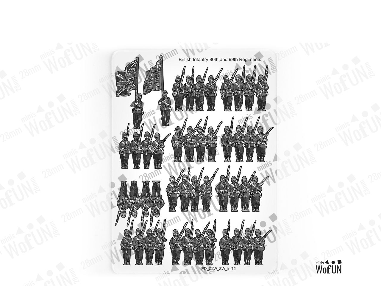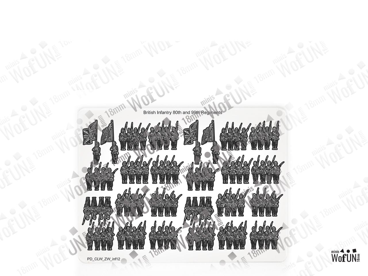 The British Infantry 80th & 99th Regiments Set is crafted on a 15x20 cm Plexiglass sprue and includes: