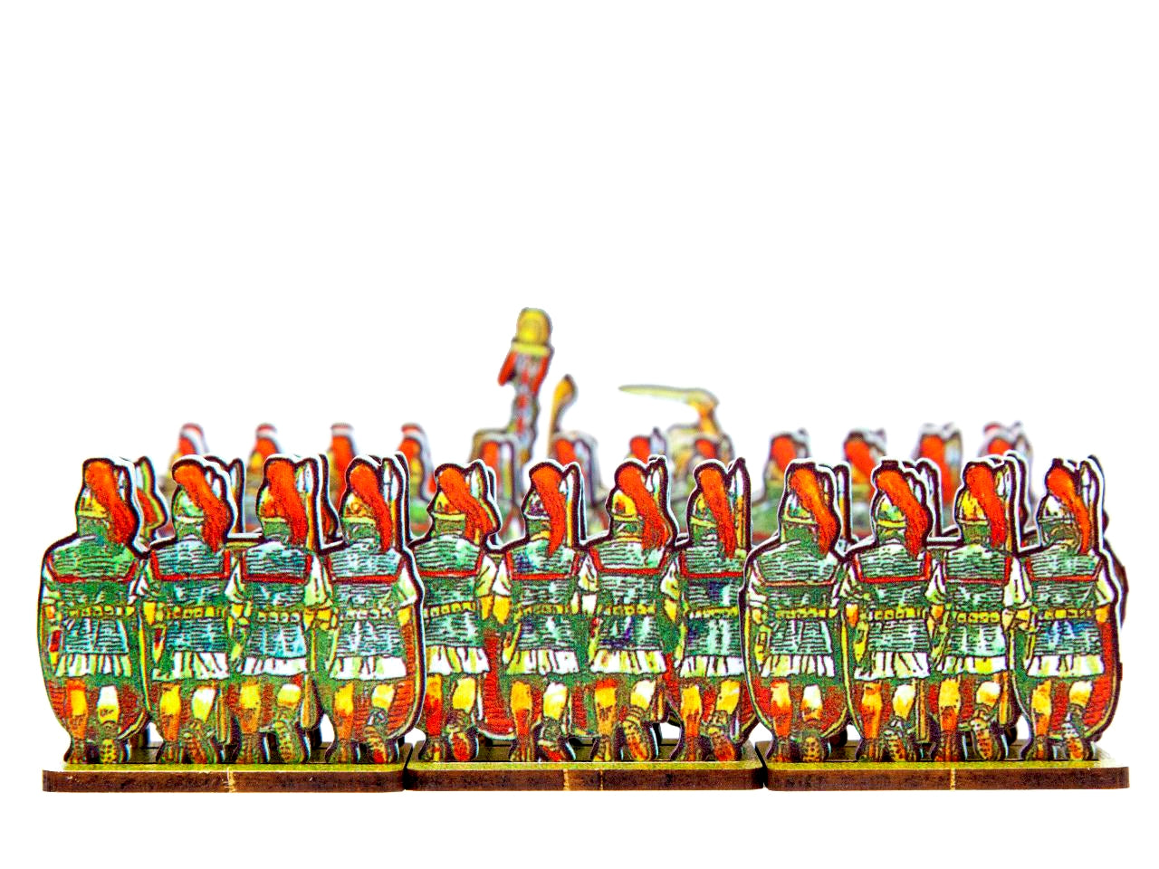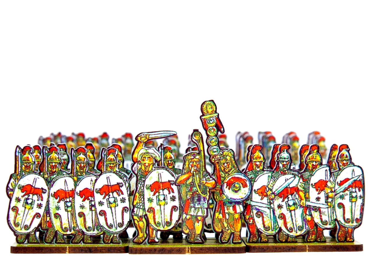 The Caesar’s infantry, white bull shield Set is crafted on a 15x20 cm Plexiglass sprue and includes: