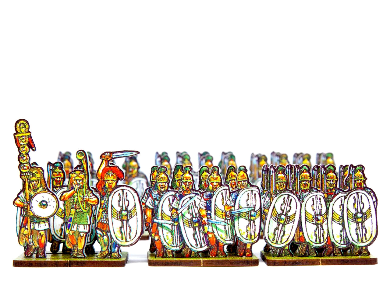 The Caesar’s infantry, white wing shield Set is crafted on a 15x20 cm Plexiglass sprue and includes: