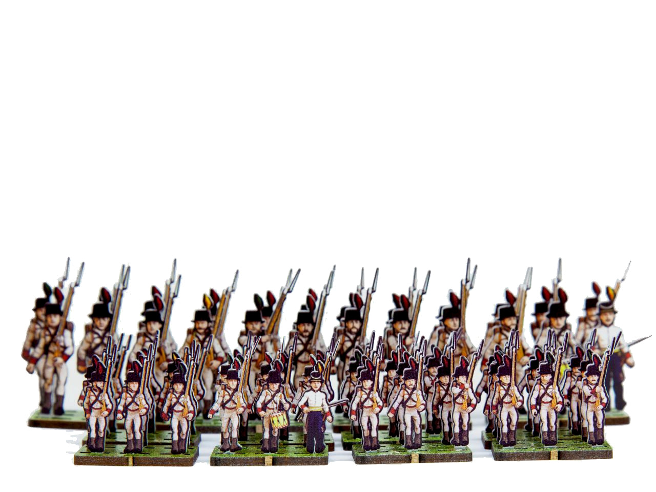 - An Infantry Base holds 6 figurines, in 2 ranks (one behind the other).