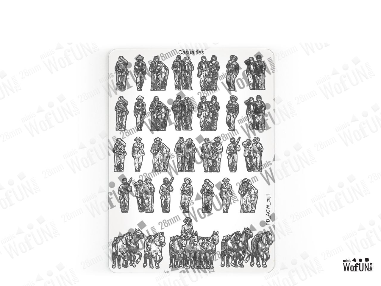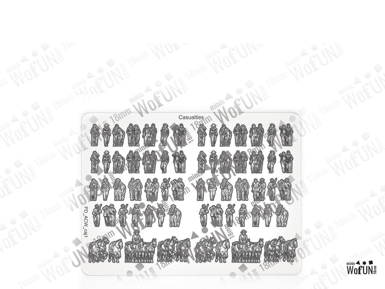 The Casualties Set is crafted on a 15x20 cm Plexiglass sprue and includes: